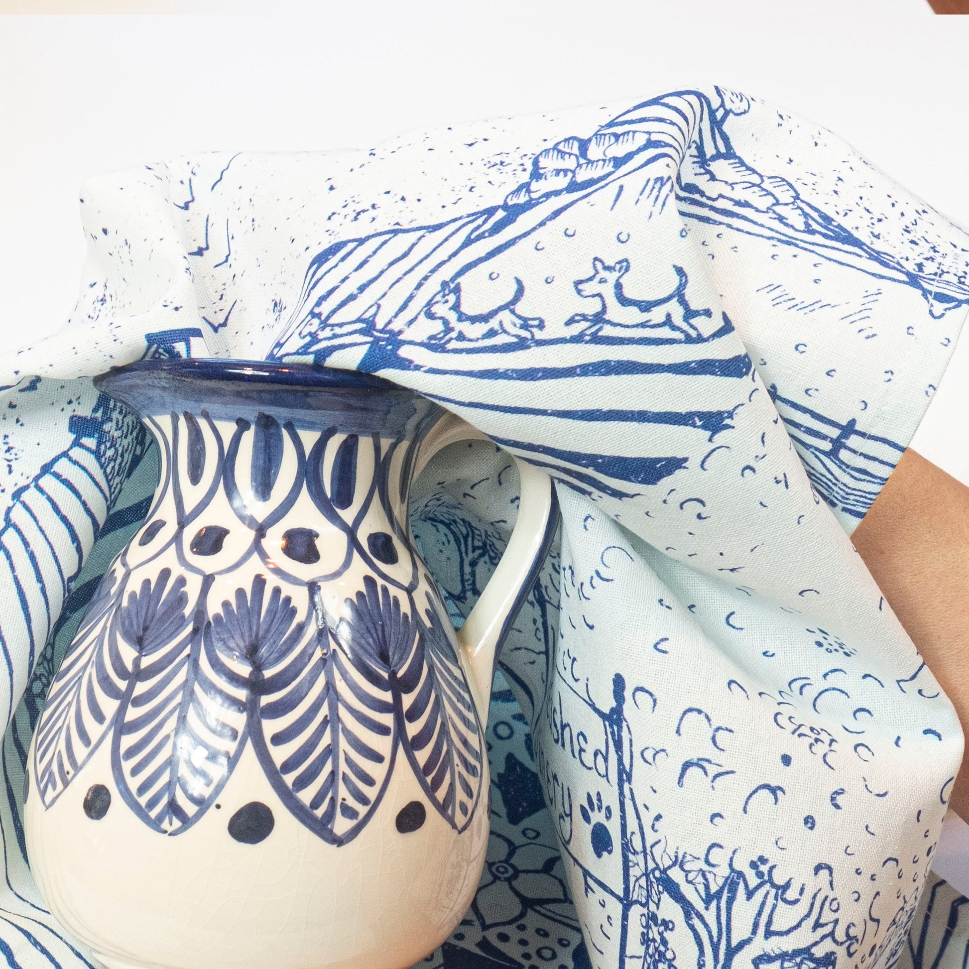 This towel is 100% functional for drying dishes (or hands) but many of my customers press it and frame it so it could be wall art too. It can also be attached with a simple sleeve onto something like a bamboo rod and then hung to cover electrical boxes and other not so beautiful things.