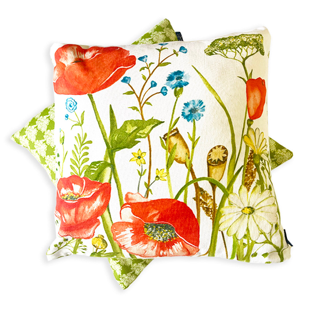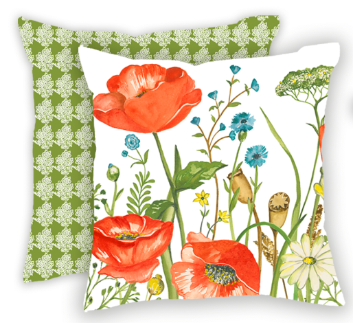 Indoor/outdoor, organic cotton, reverse pattern, organic cotton and quality construction. Zippered. Washable. Approx 18" x 18" - fits standard form.