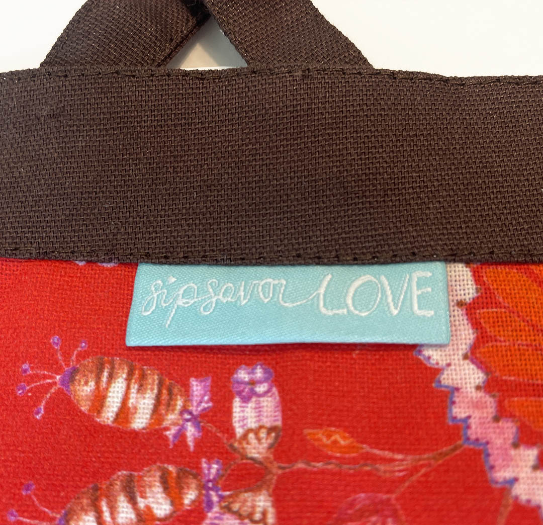 My company motto can be seen on the woven tag at the neckline "Sip Savor Love". Each day can feel richer when we make this positive focus part of our daily intention. May your days feel inspired!