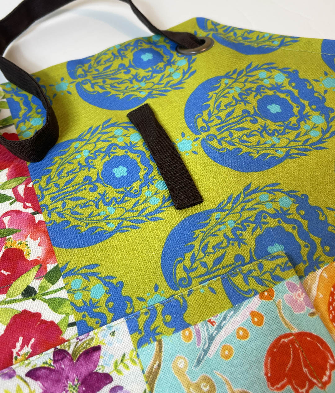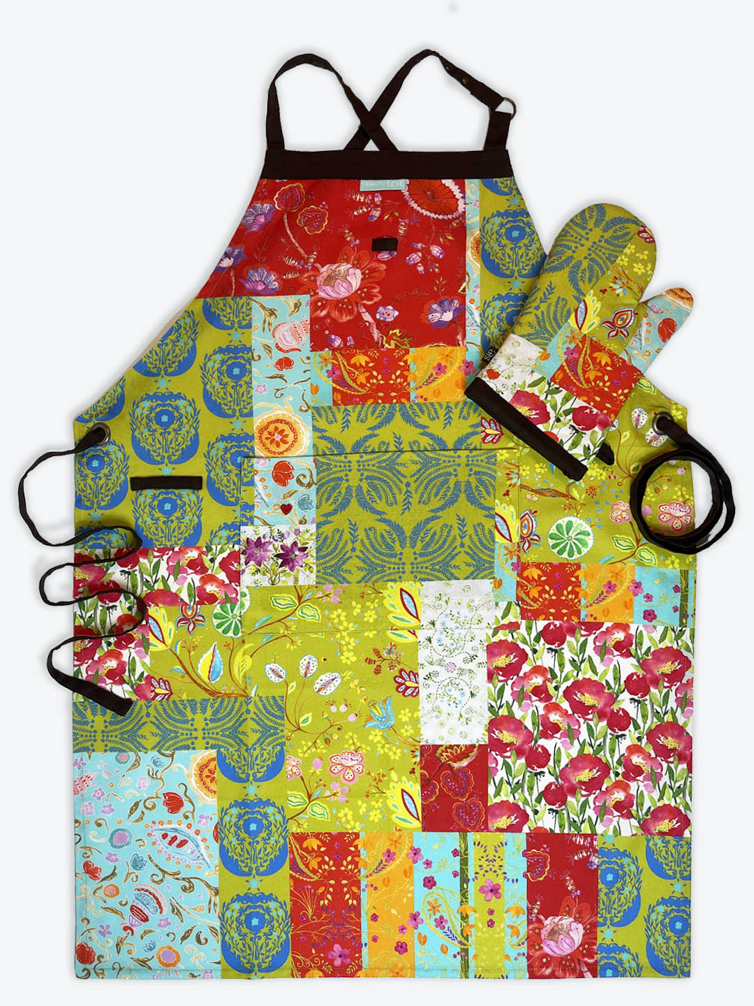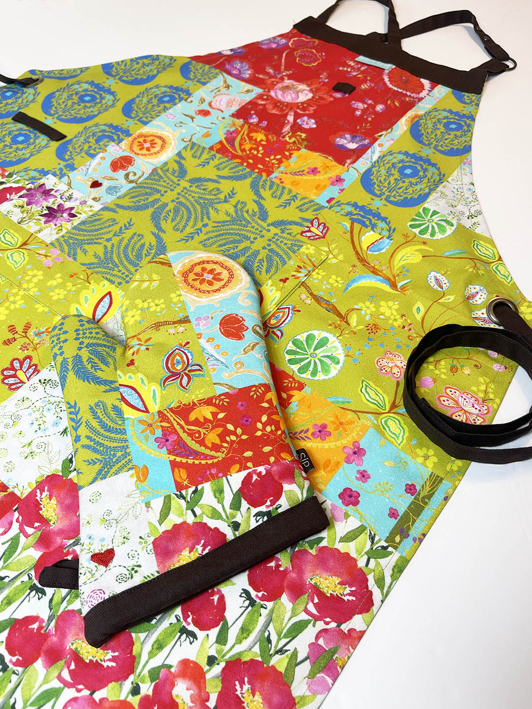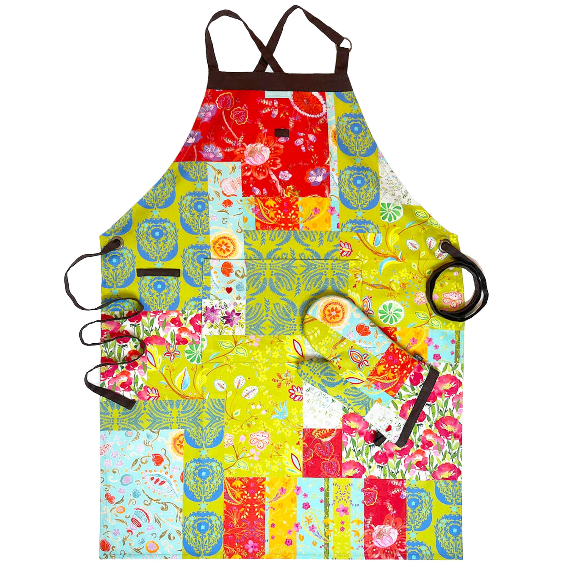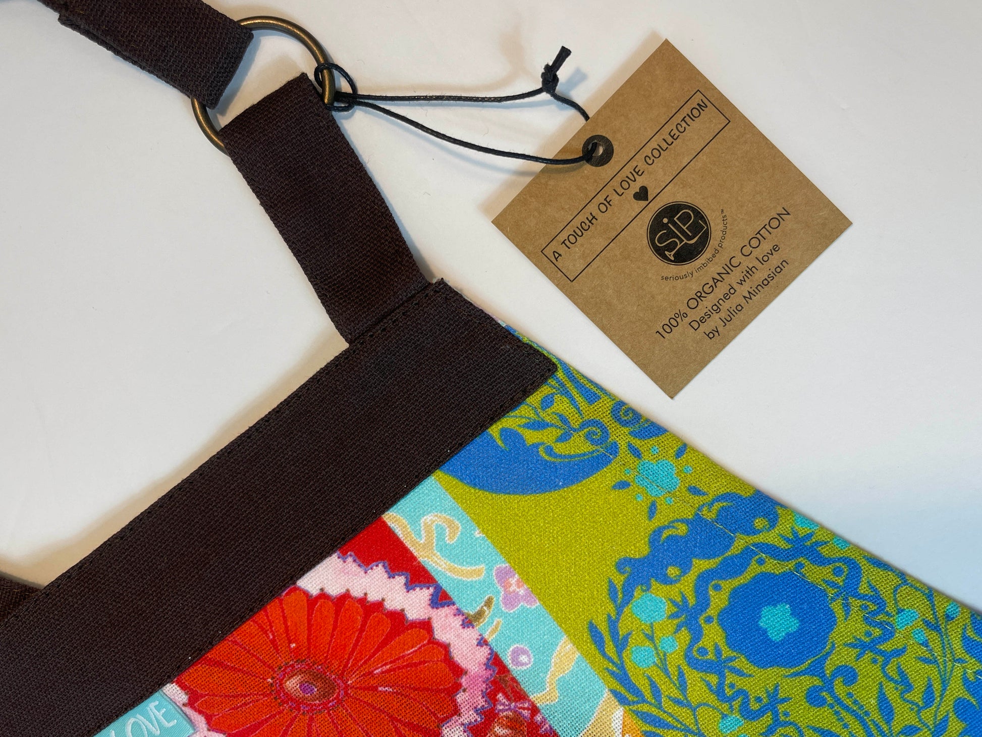 Unique classic kitchen apron with criss cross back. This is functional art for your kitchen! This apron includes 8 different of my designs arranged to look like a quilt. They are all a part of my A Touch Of Love Collection and even this apron has an embroidered heart to remember that it is ALL ABOUT LOVE!