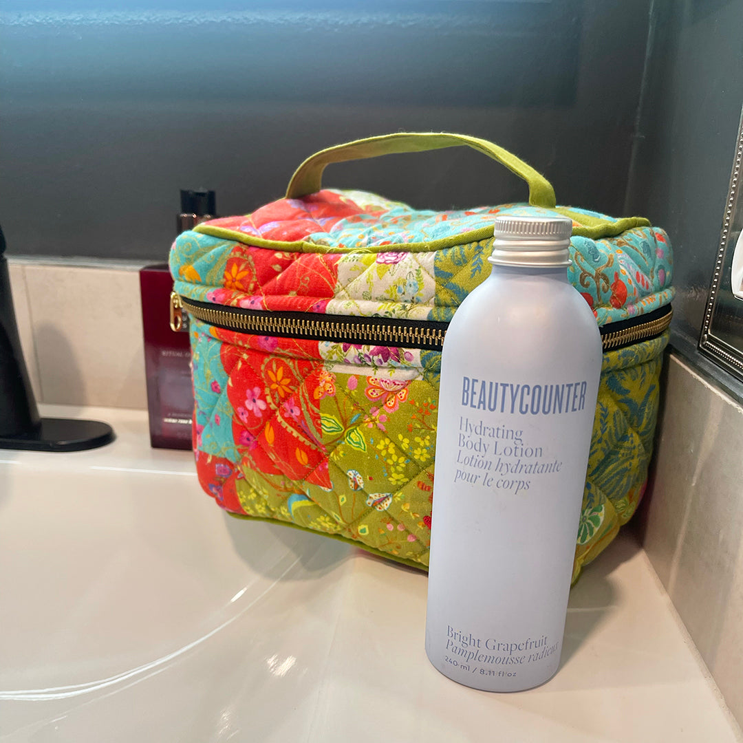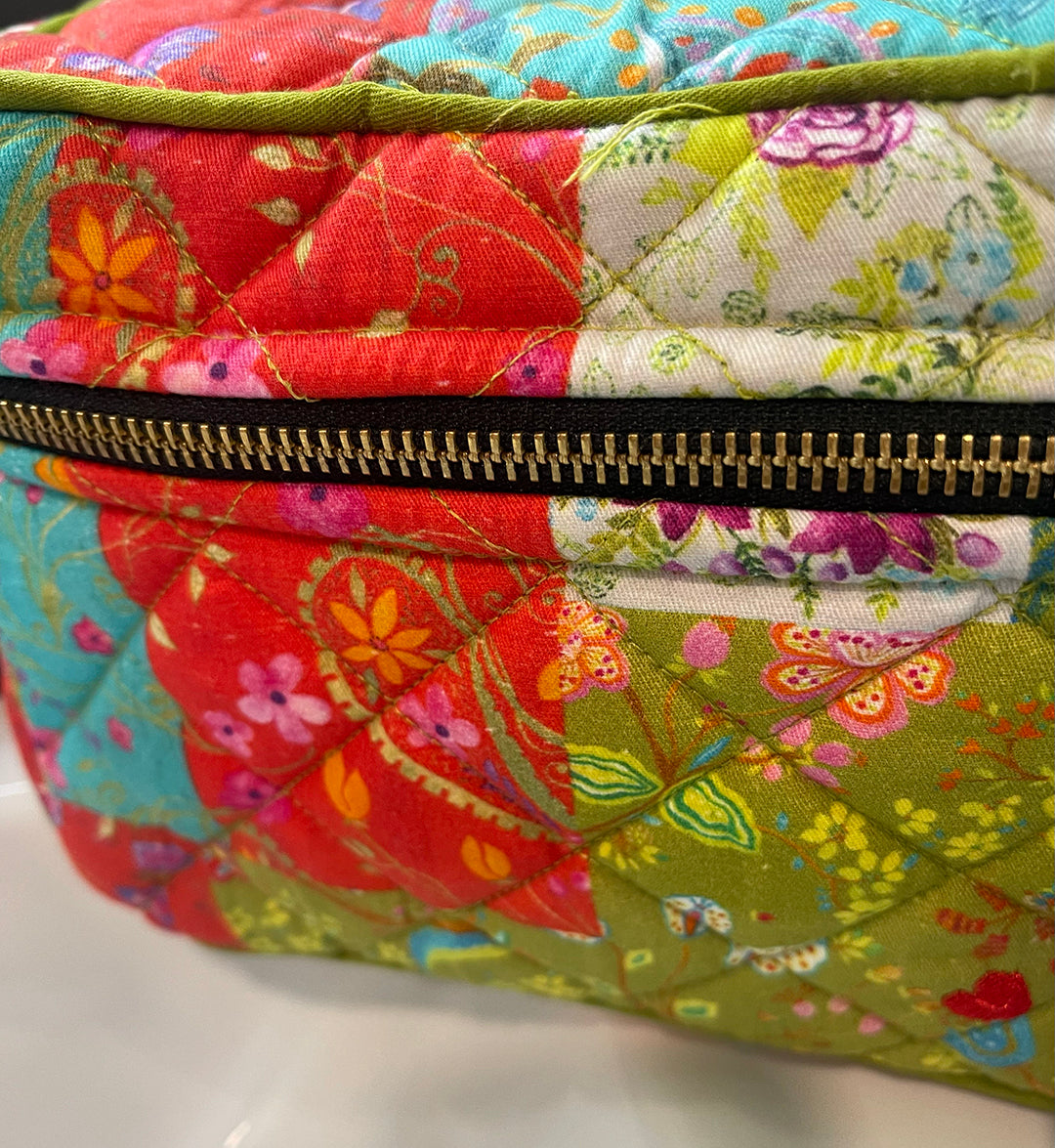 This wonderful quilted cosmetic bag is from our 'A Touch of Love Collection' print. I love how the diamonds pattern from the quilting gives it added dimension.