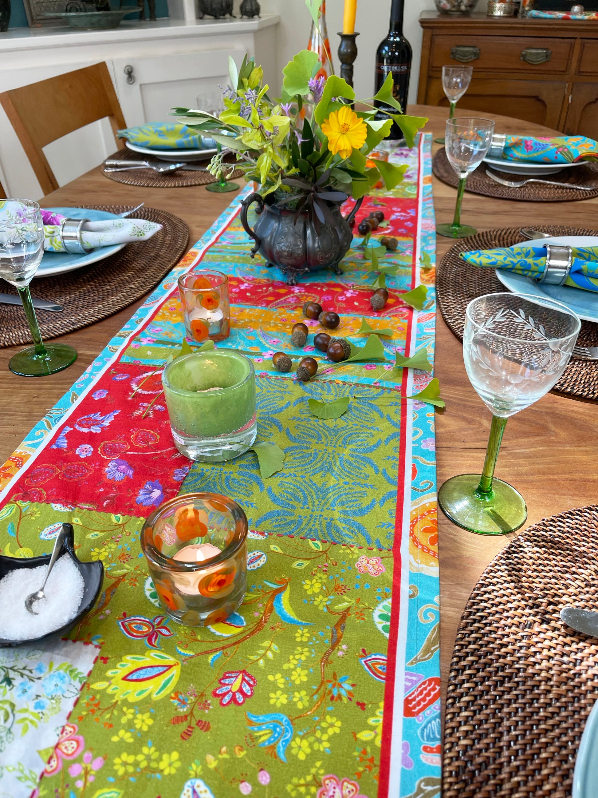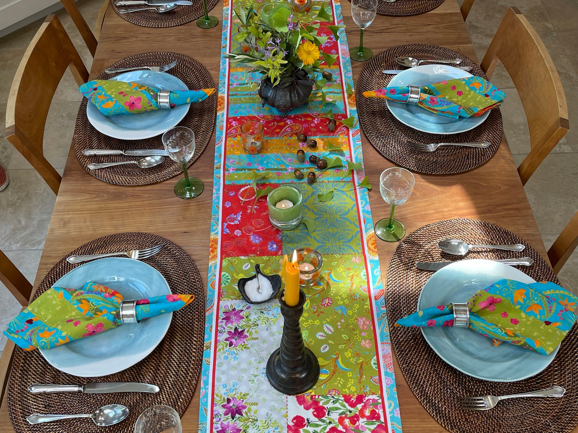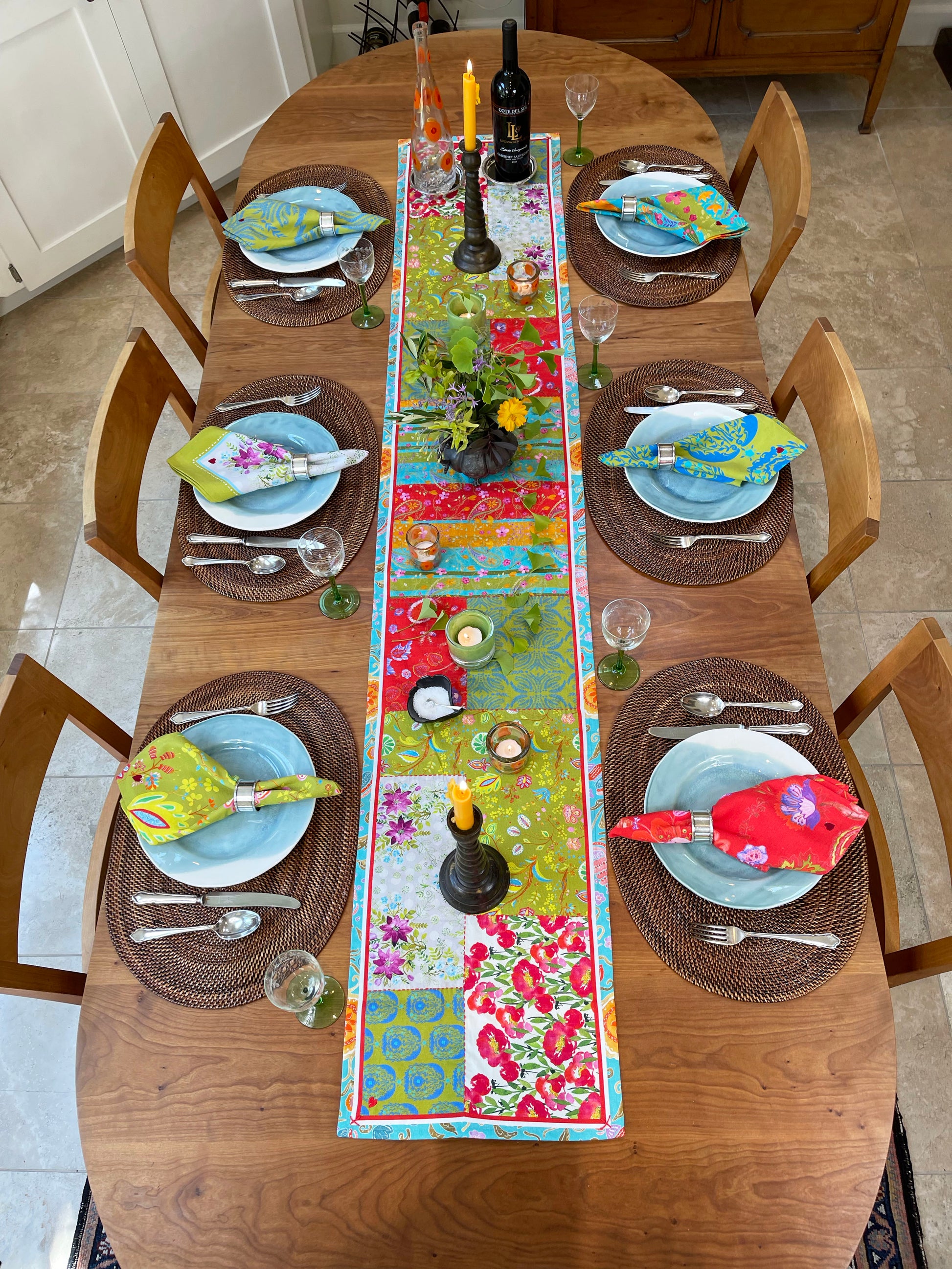 I love this napkin. Transformation is a fun and fresh design inspired by paisley. The icons are painted in a loose style and then mirrored giving a modern edge to a classic icon.