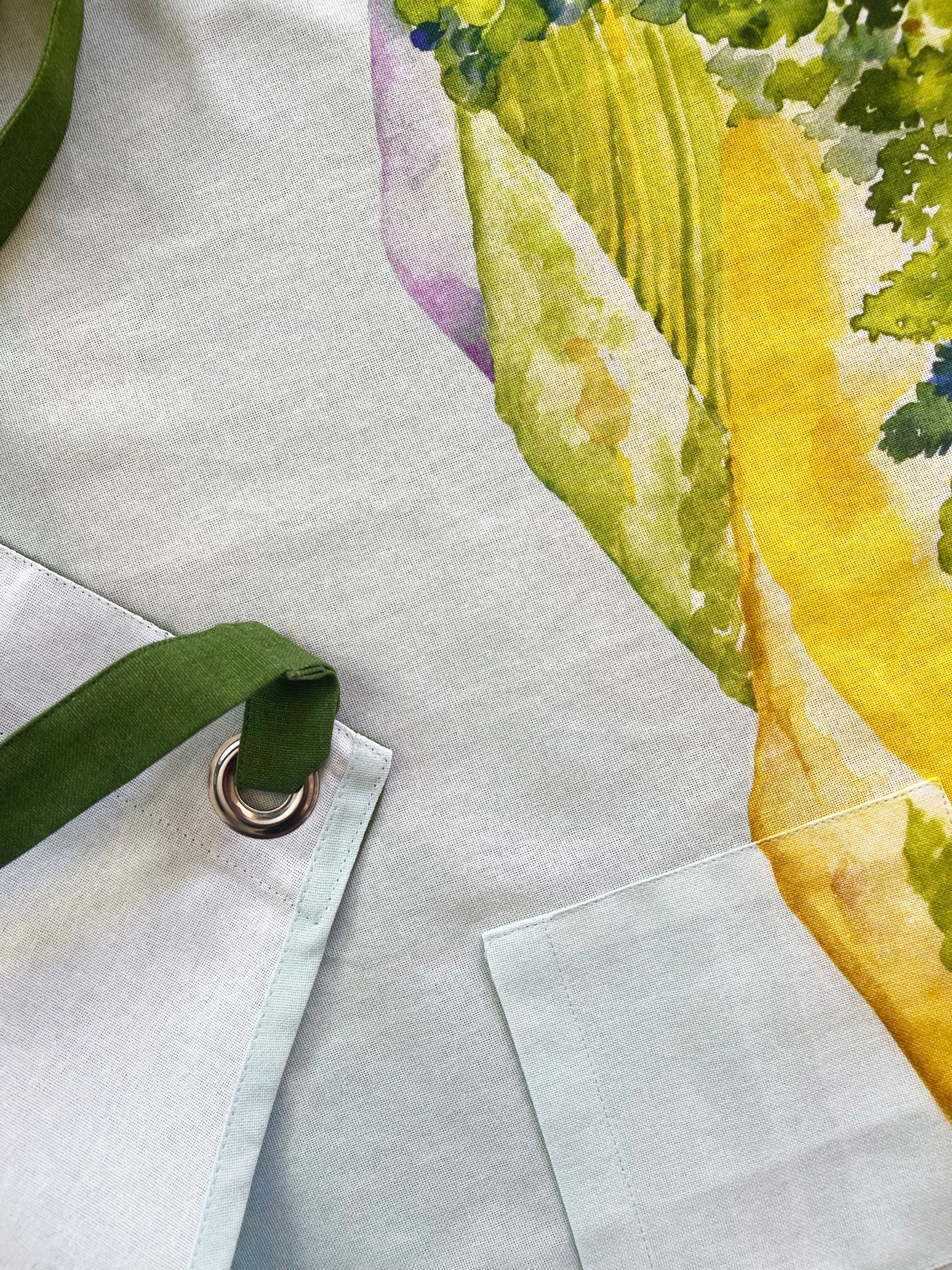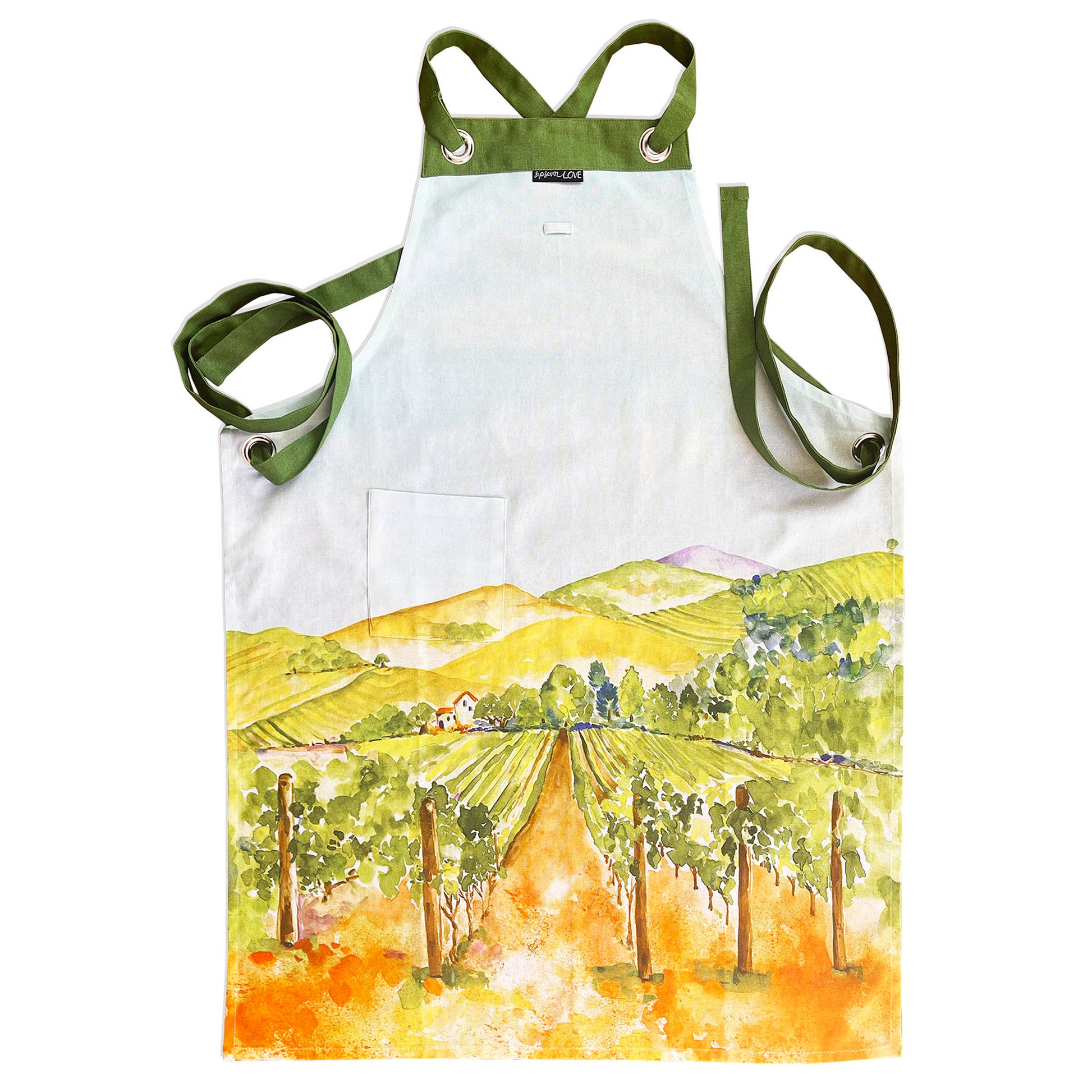 Unique classic kitchen apron with criss cross back. This is functional art for your kitchen! My original watercolor painting is scanned and printed in a high quality production process. Features include:
