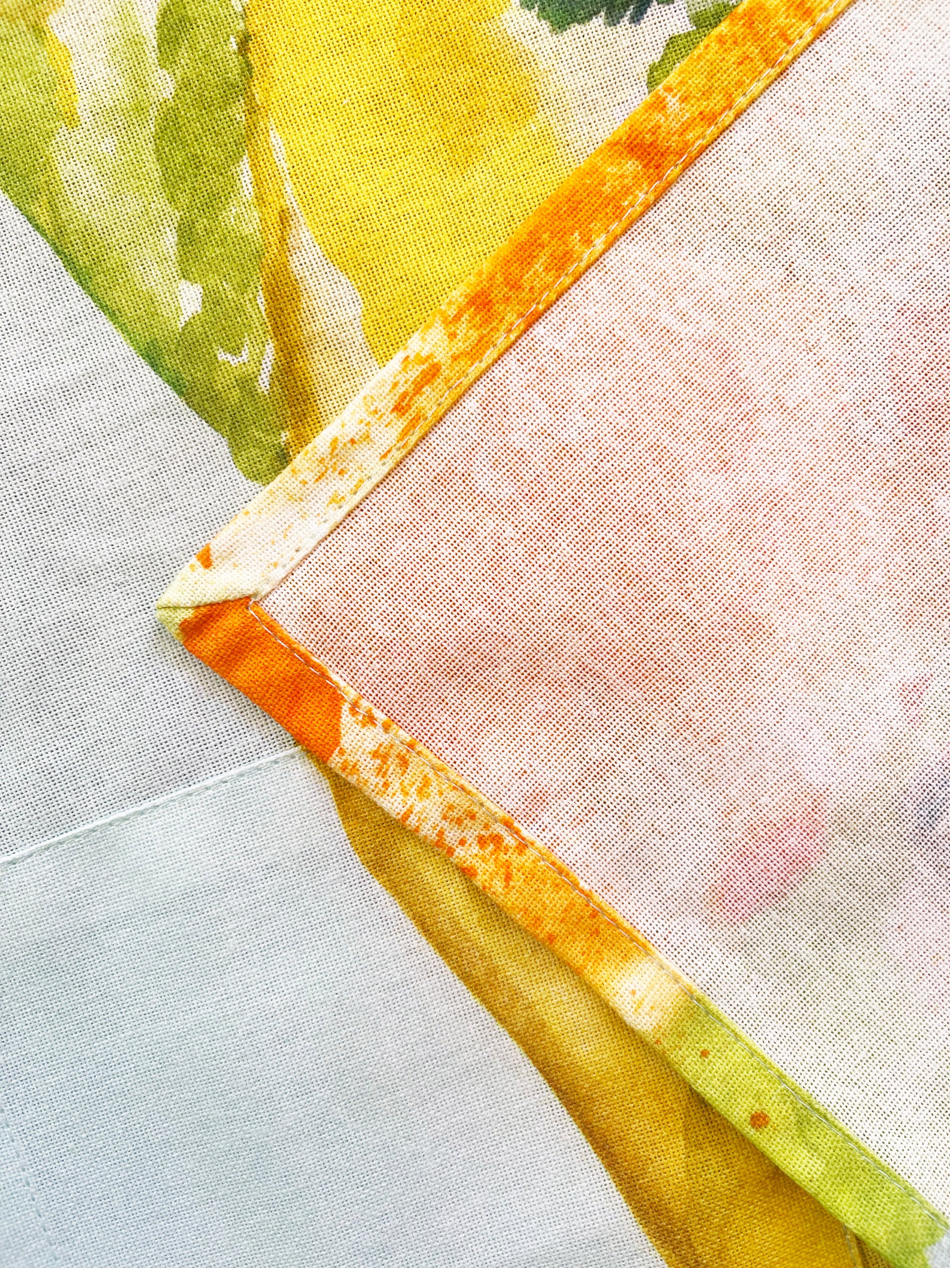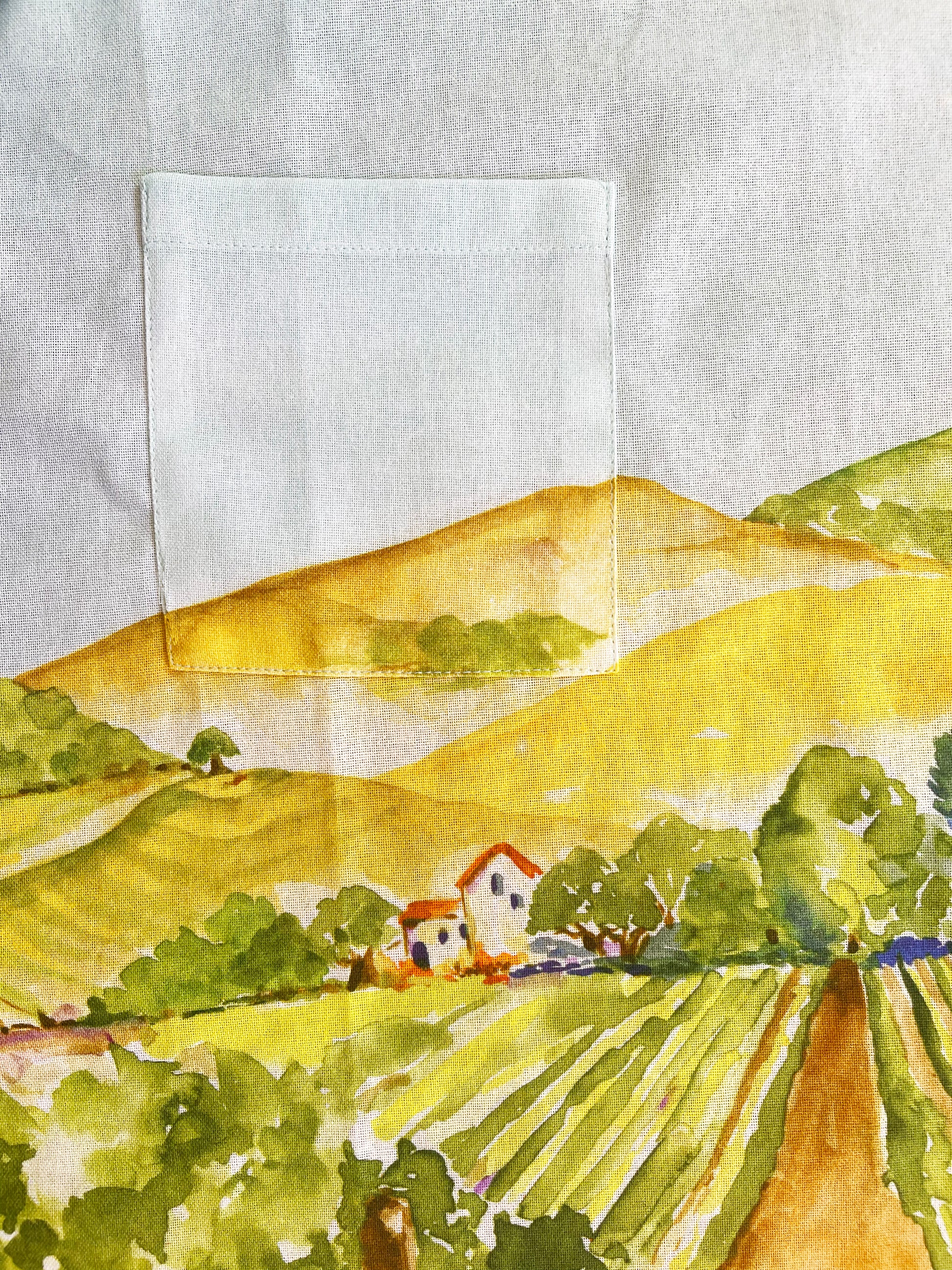 37” tall. 100% high grade organic cotton. Beautifully mitered corners, hidden pocket and eye glass loop. Natural and long lasting dyes so the colors do not fade after many washings. Color safe.
