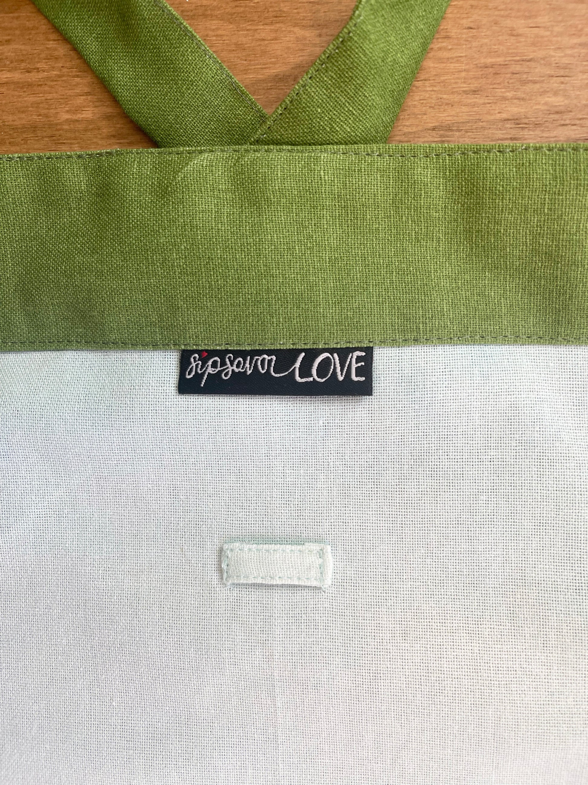 My company motto can be seen on the woven tag at the neckline "Sip Savor Love". Each day can feel richer when we make this positive focus part of our daily intention. May your days feel inspired!