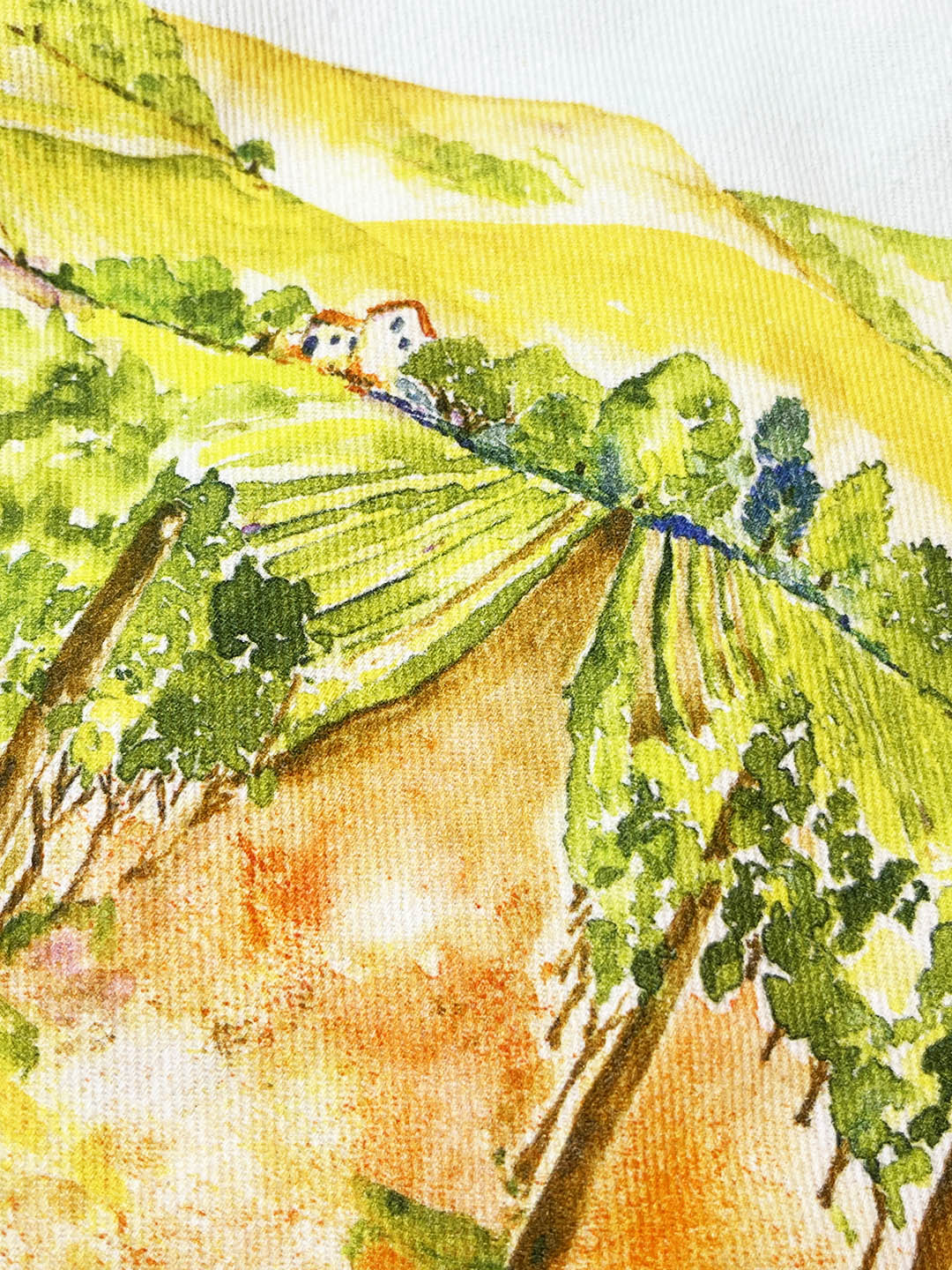 Among the Vines is painted from my imagination - it is a collection of all the vineyards I've ever visited around the world. I hope it will remind you of your visit to the wine country and bring you happy memories.