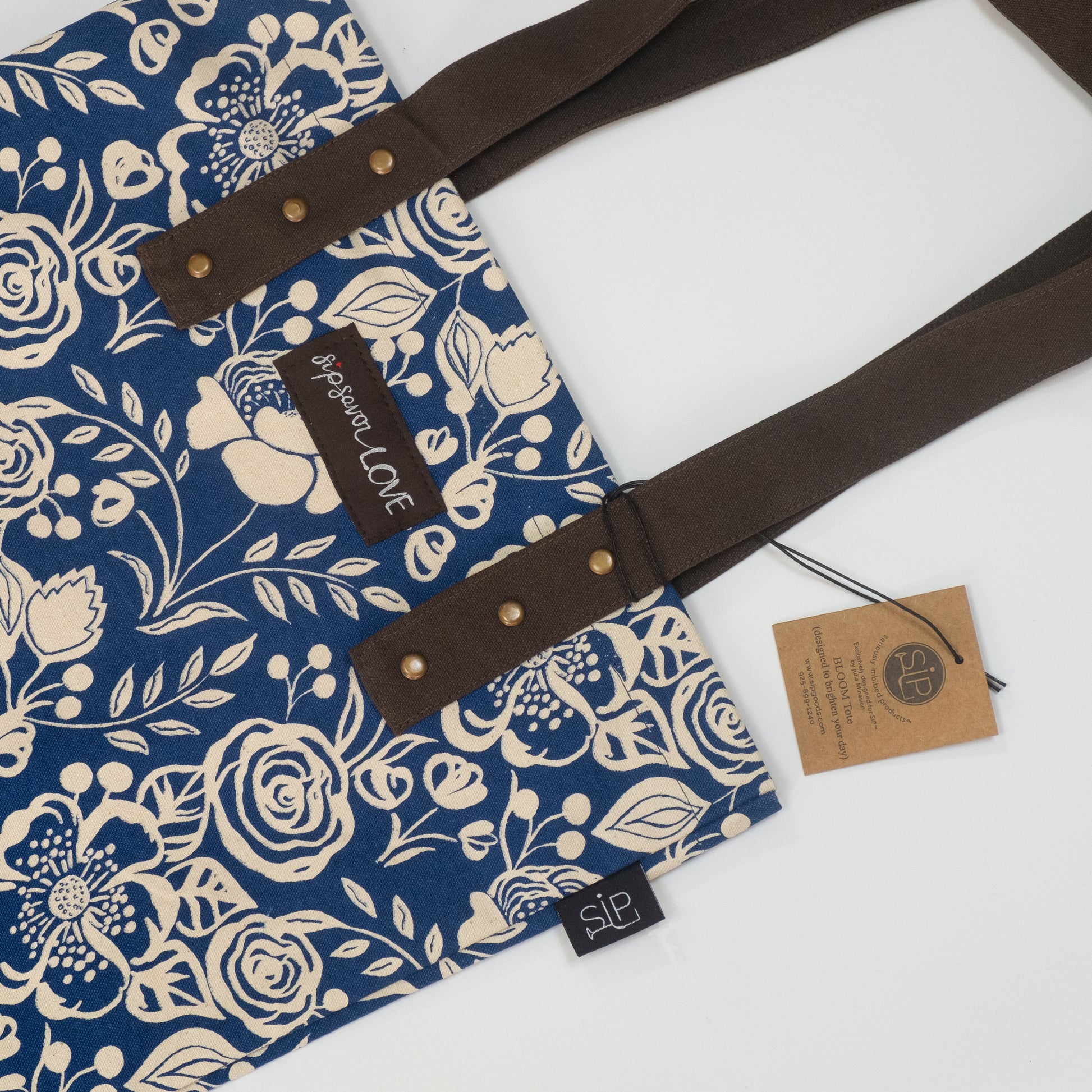 Size 14” x 15” with a 3" gusset. 100% high grade organic cotton canvas. Quality construction, leather look fabric handles, fun tag with my company motto: Sip Savor Love. Each day can feel richer when we make this positive focus part of our daily intention