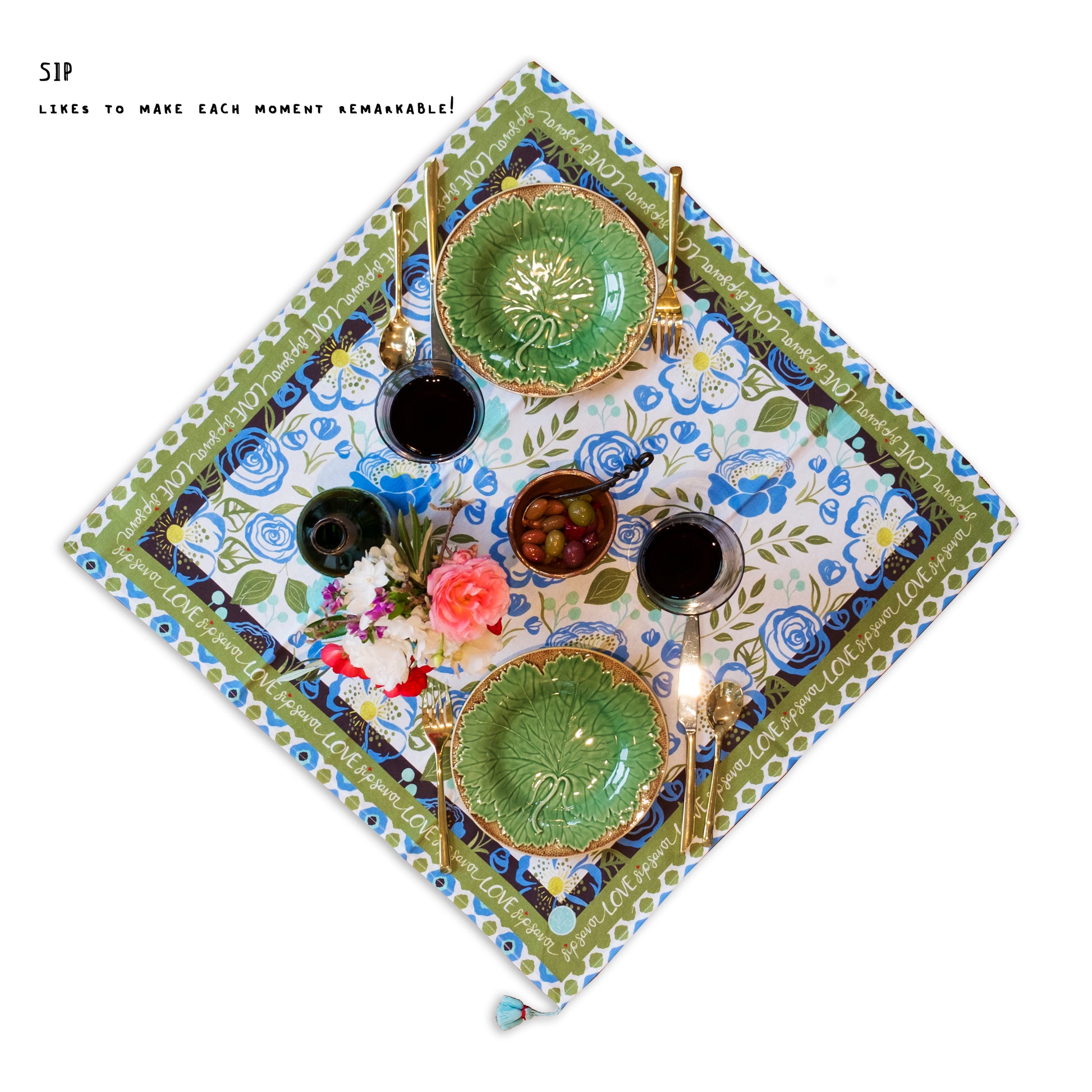 SIP SAVOR LOVE runs around the border, reminding one to love the moment.