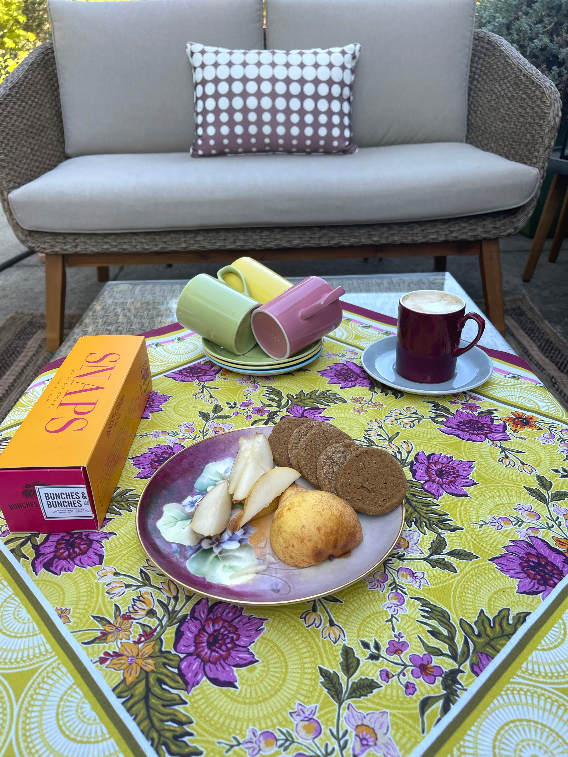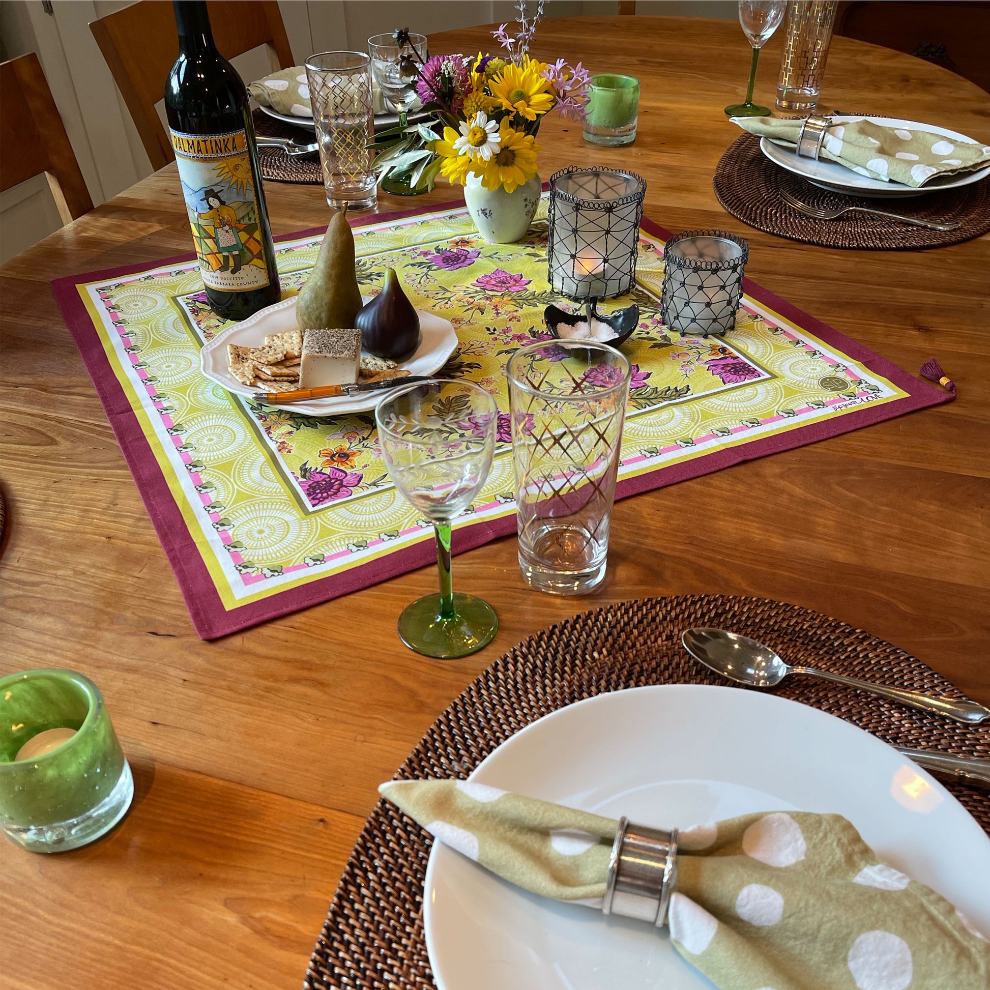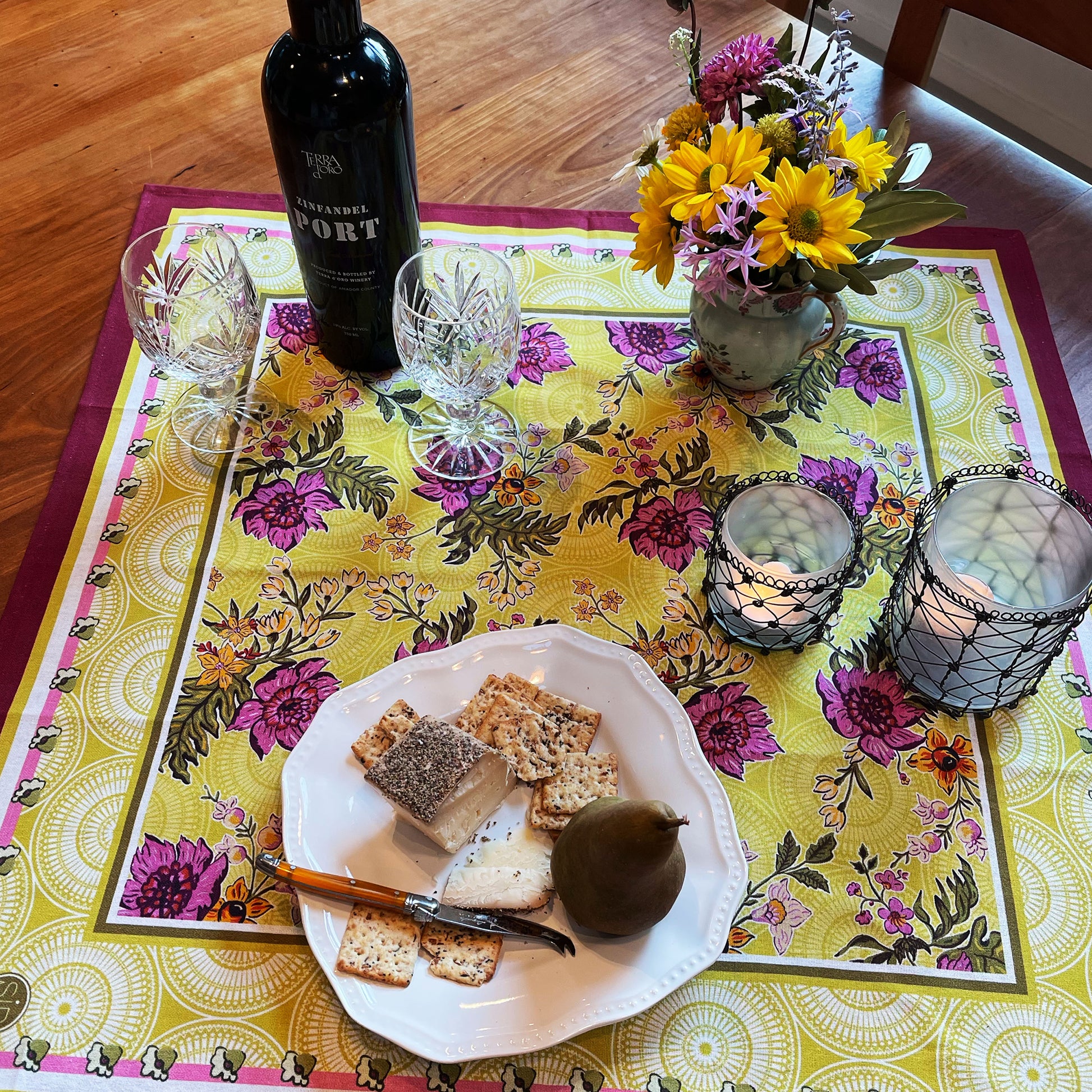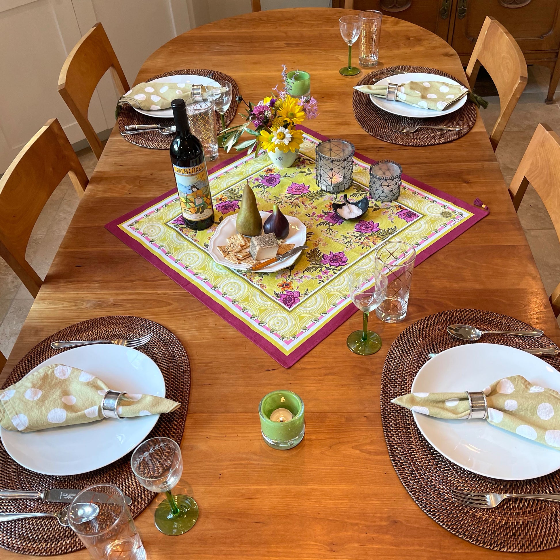 Use for a quick throw picnic cloth, to cover a small table, or as a table topper (aka table scarf) for a larger table.