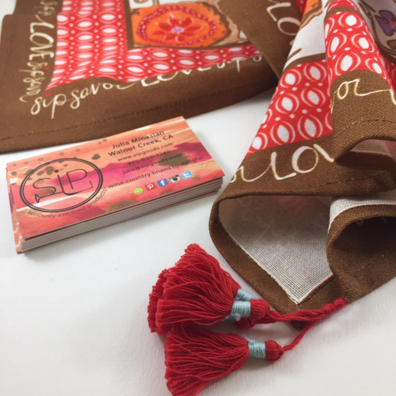 This design has been used on many products! In my SIP line I have it in an apron and mitt as well as a tote bag. I will add these to Etsy as soon as I have some stock. It's fun to see how differently a design can look when the color or scale are changed.