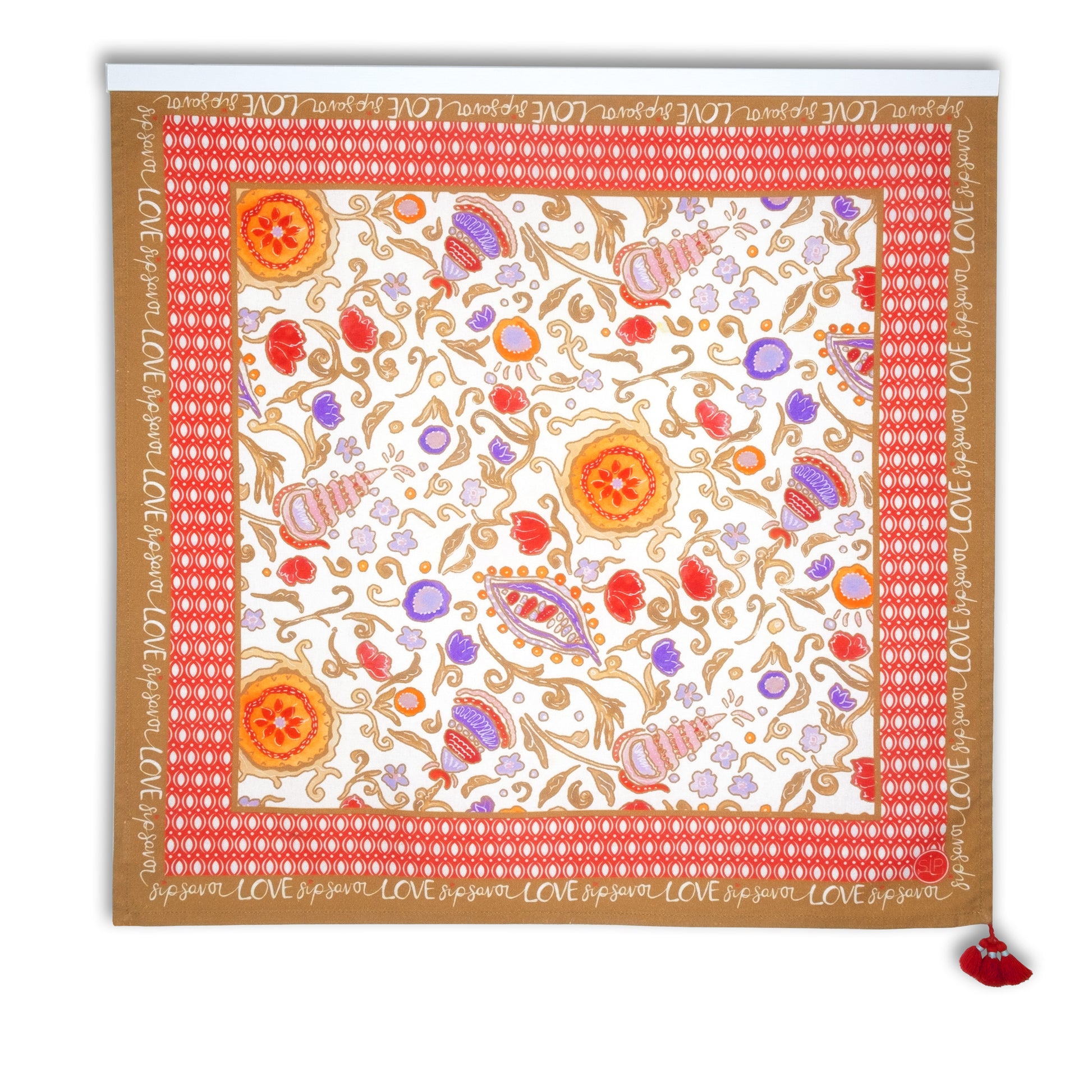 A whimsical, modern, unique square Table Topper/Table Scarf/Picnic Cloth/Small Tablecloth with a classic twist! Design is entirely my own original artwork which is then scanned and printed in a high quality production process. Features include: