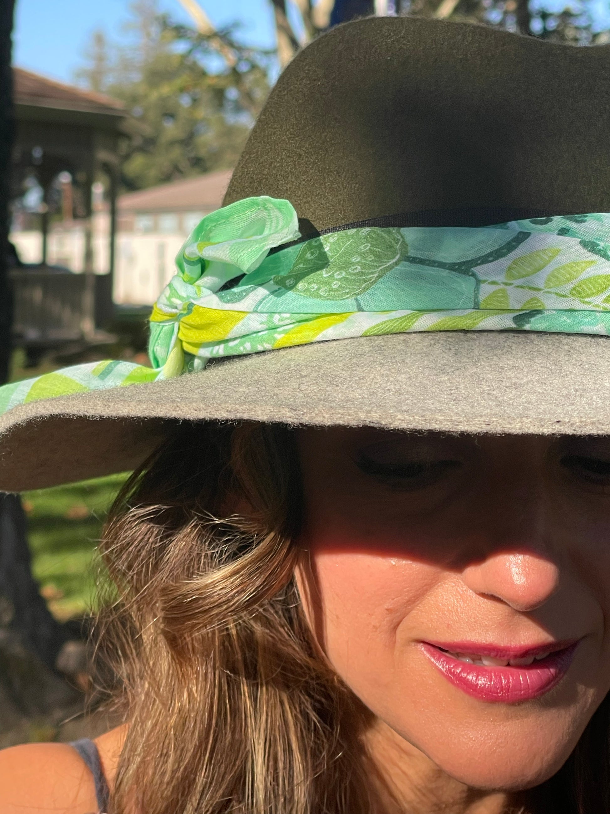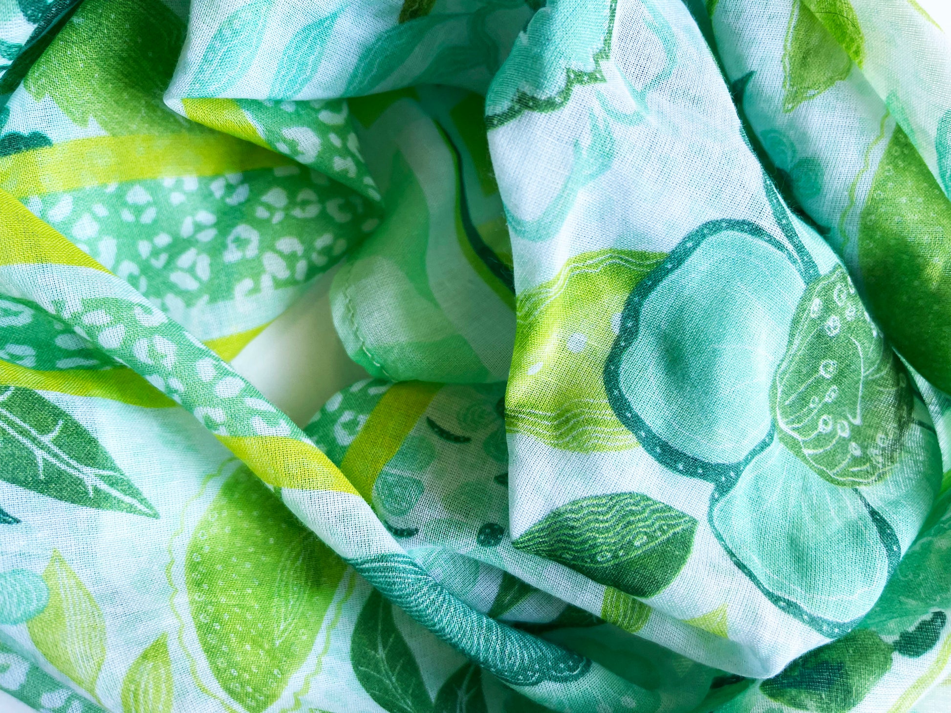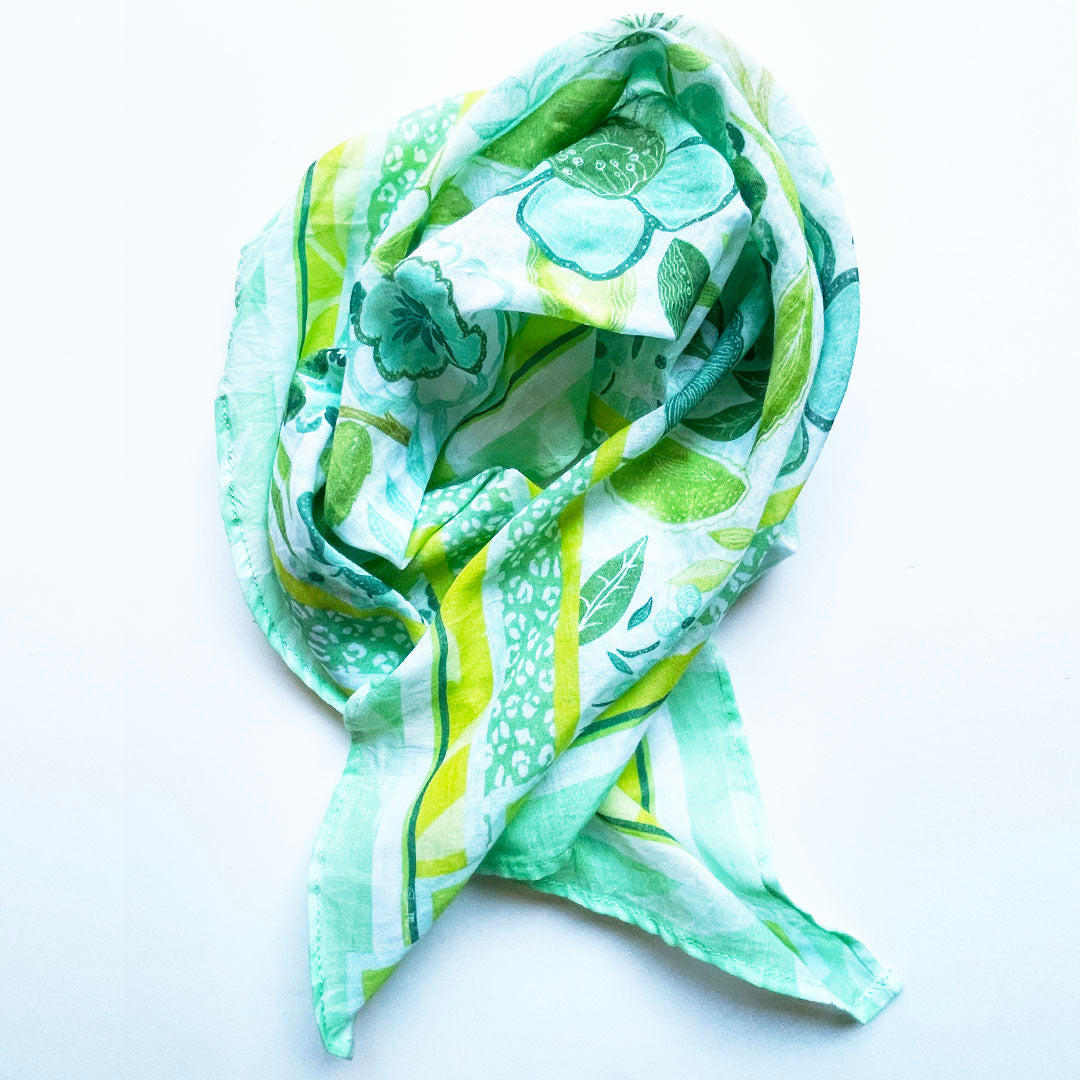 There are so many ways to wear a scarf. Have fun just throwing it on and letting the design and fabric flow as they may. Wear it around your neck, tied to the side of a bag, as a belt, as a headband...
