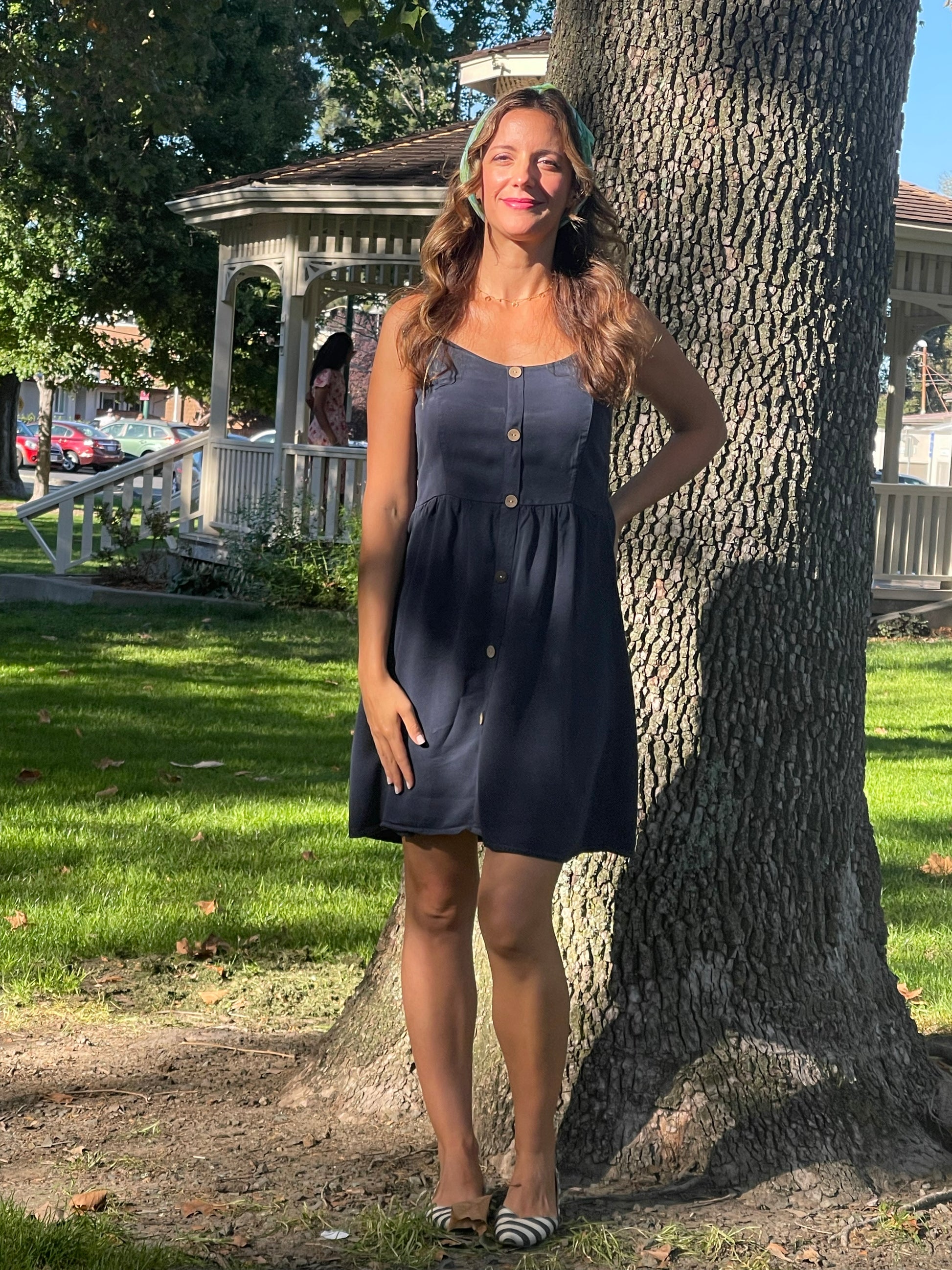 It is made entirely with organic cotton and is light weight, soft and drapes nicely. It is also breathable and comfortable to wear.