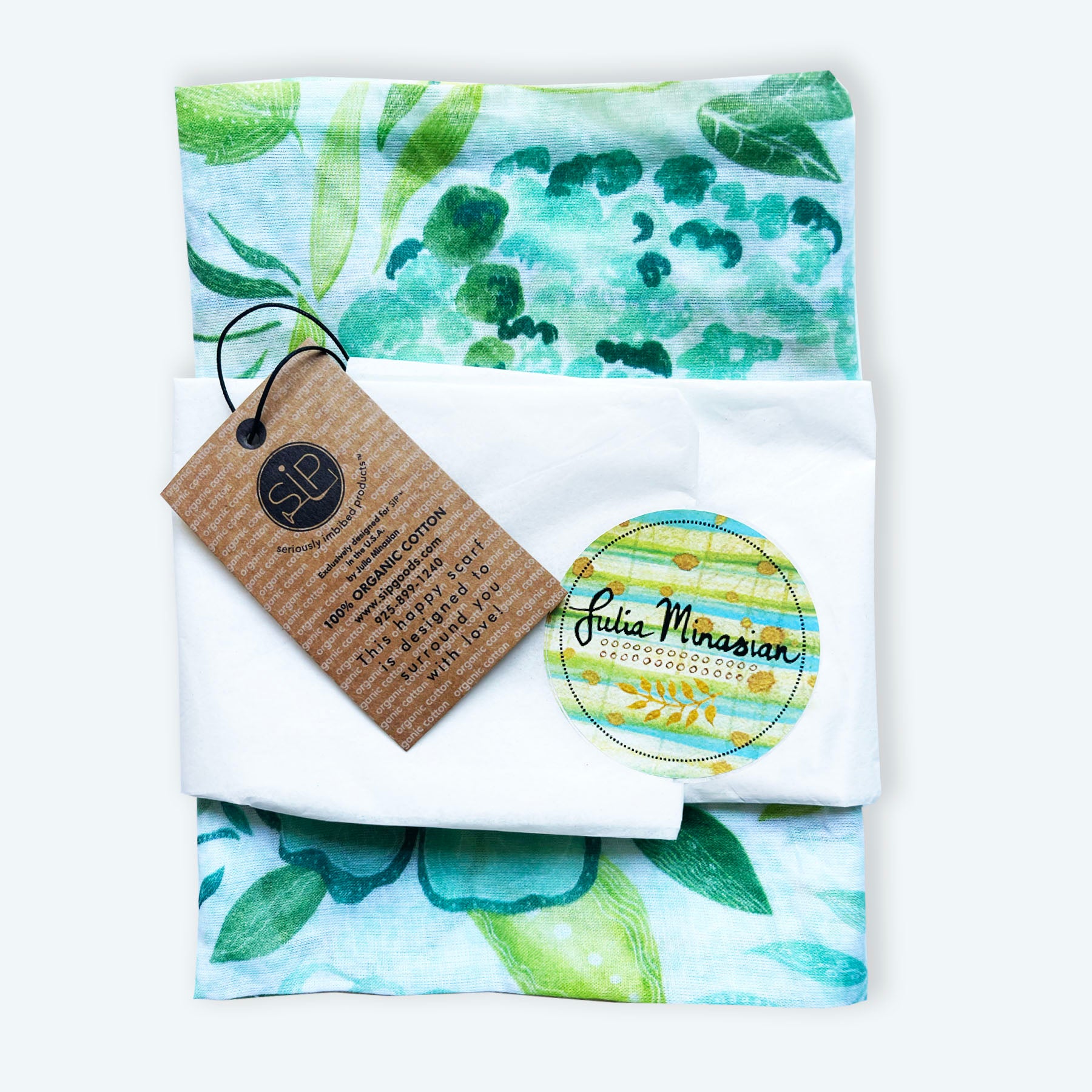 My organic cotton scarves come nicely folded in tissue with a special sticker and tag. They make beautiful gifts!!!