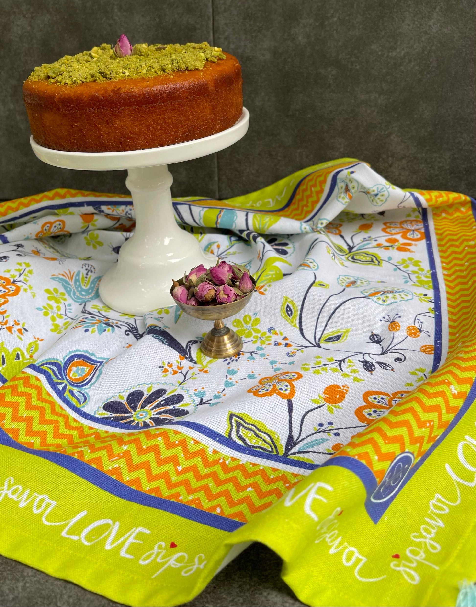 A whimsical, modern, unique Table Topper/Table Scarf/Picnic Cloth with a classic twist! Design is entirely my own original artwork which is then scanned and printed in a high quality production process. Features include: