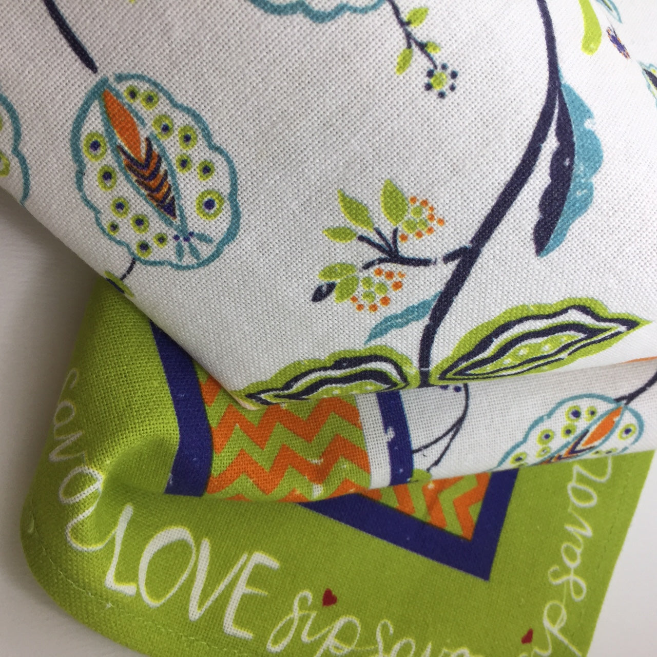 This design has been used on many products! In my SIP line I have it in an apron and mitt as well as a tote bag. I will add these to Etsy as soon as I have some stock. It's fun to see how differently a design can look when the color or scale are changed.