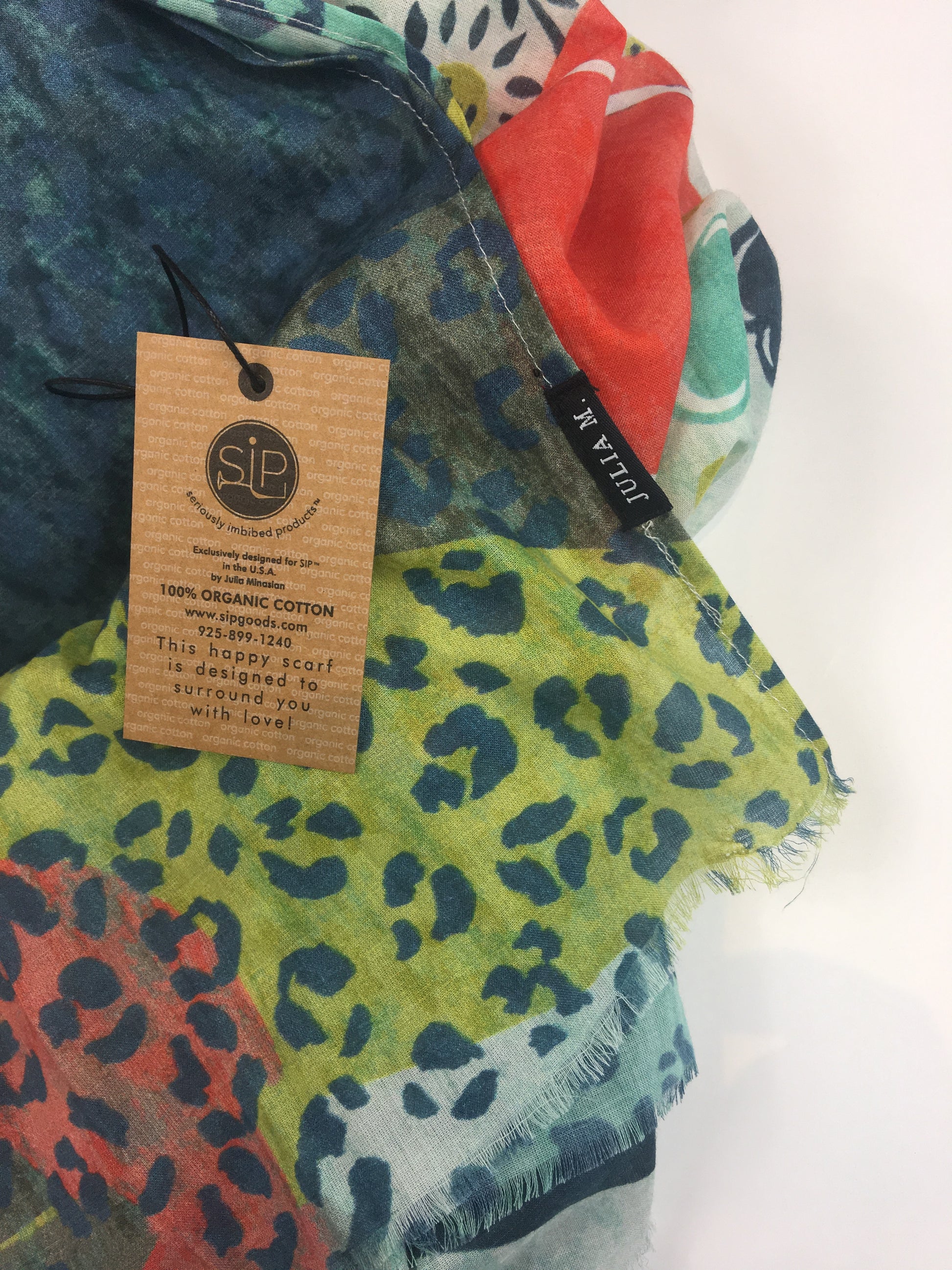 My organic cotton scarves come nicely folded in tissue with a special sticker and card. They make beautiful gifts!!!
