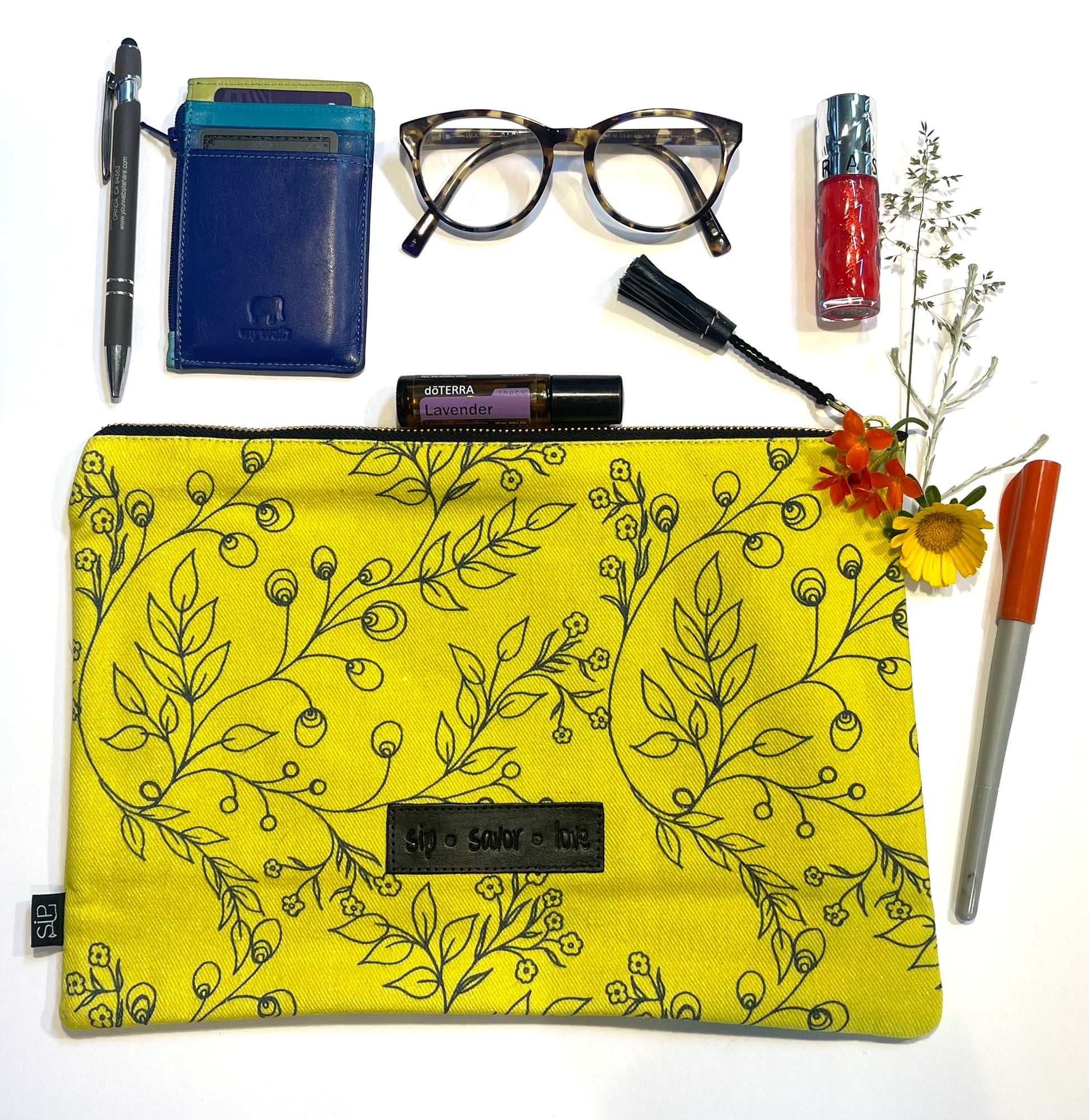 Known as the DeClutch bag, this is the place to zip away all distractions and live in the now to SIP SAVOR and LOVE! Take it for a fun time out with friends. Your fashion statement will have added style. It looks great with a simple black dress and is the perfect size to hold essentials.
