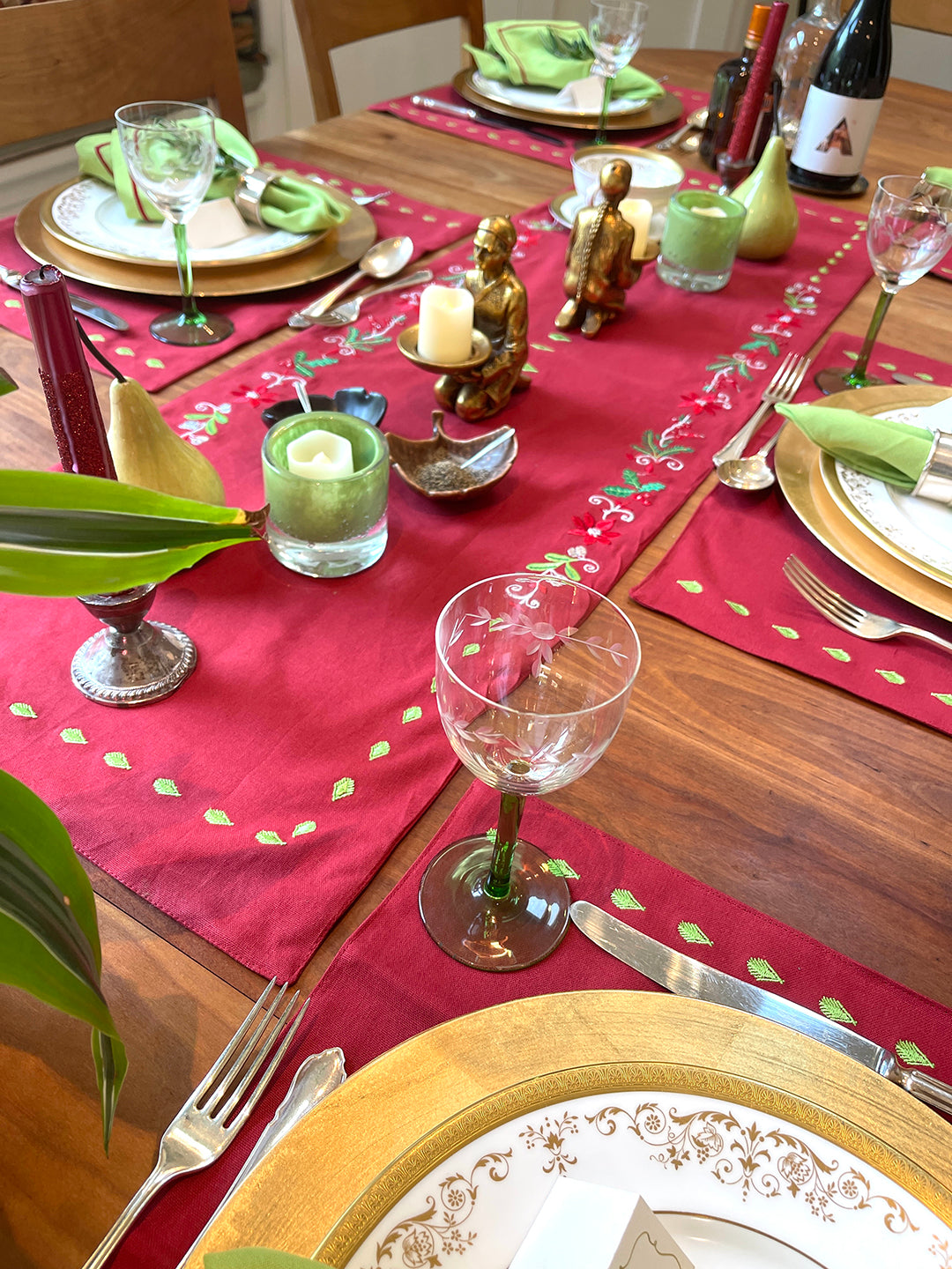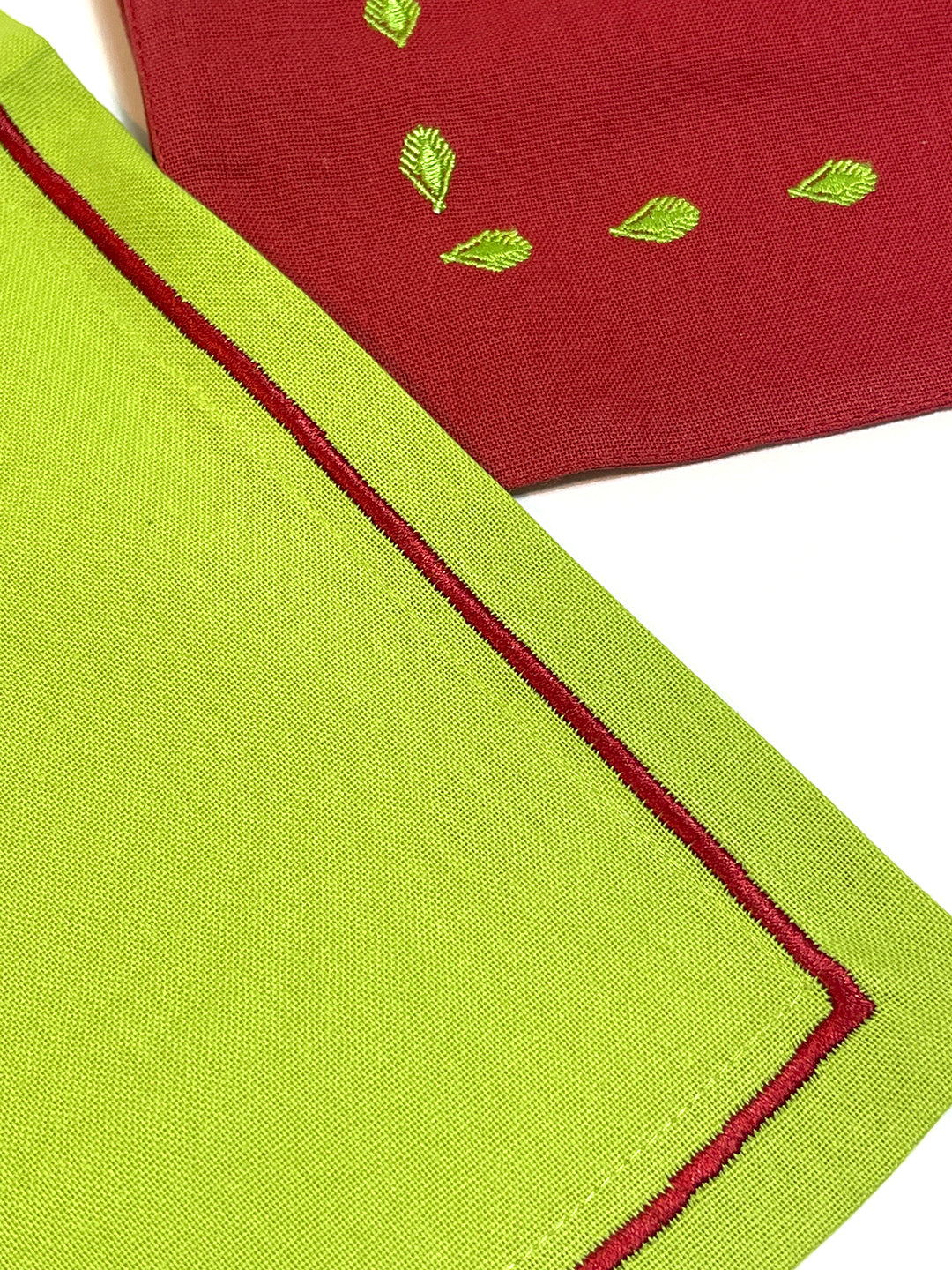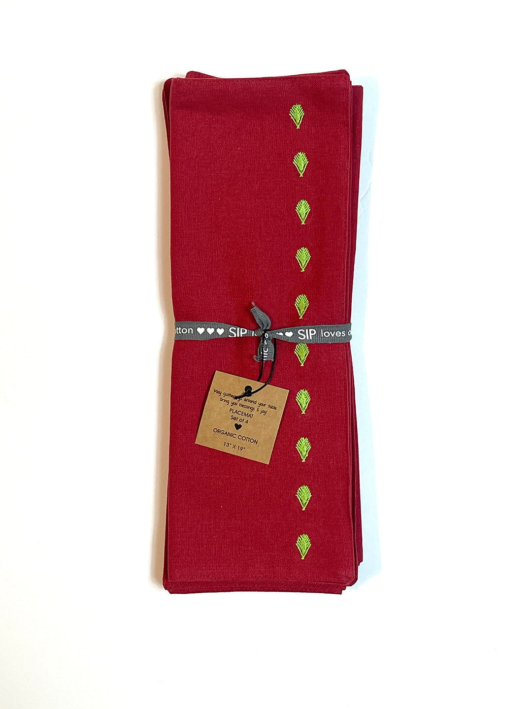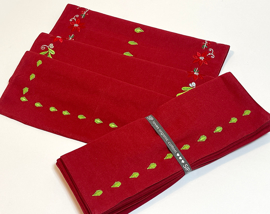These placemats are a winter palette. The red and green make it perfect for Christmas dining or just to celebrate the season a woodsy decor.