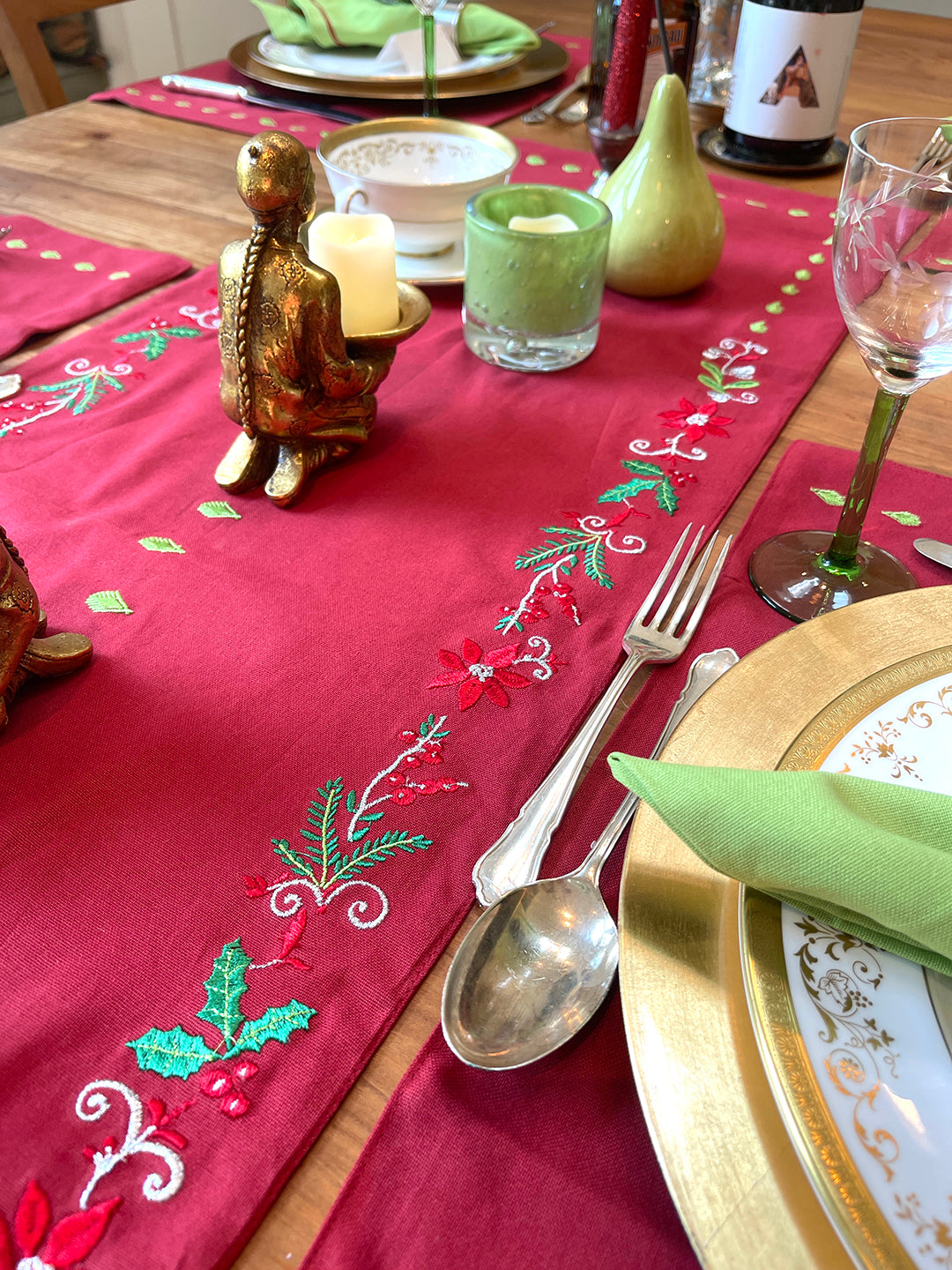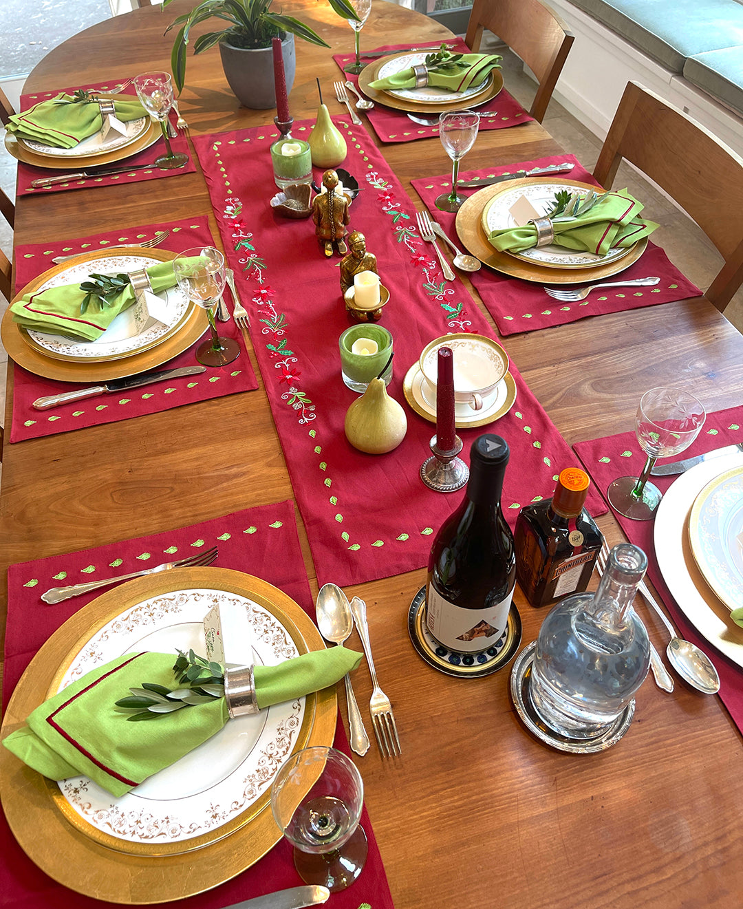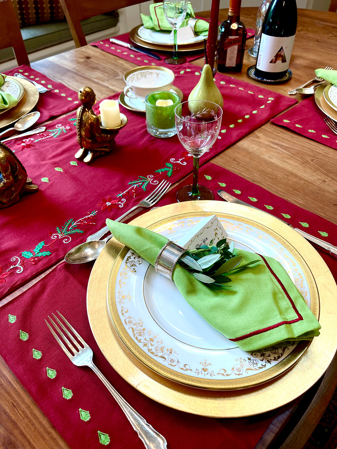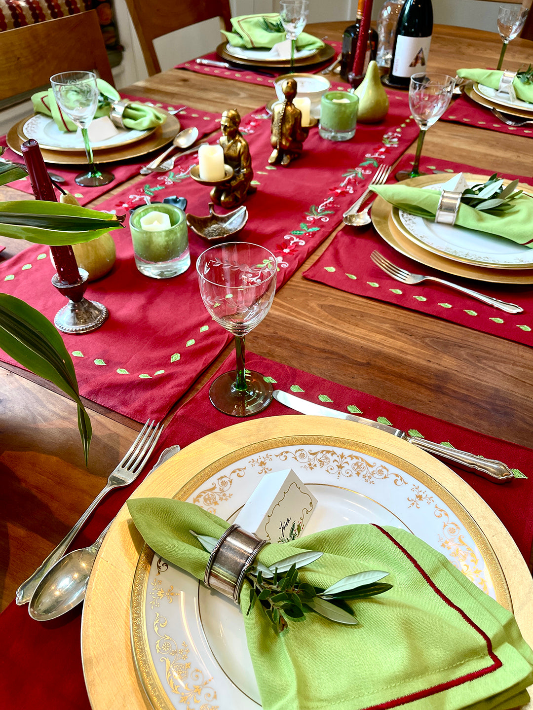 These placemats are a winter palette. The red and green make it perfect for Christmas dining or just to celebrate the season a woodsy decor.