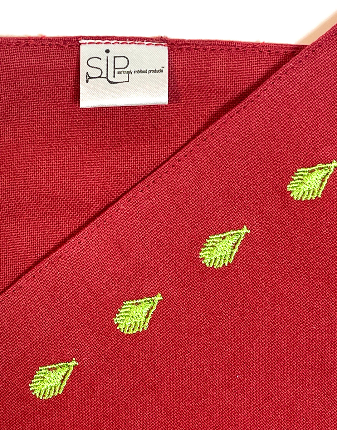 Beautifully made and wonderful quality. The green is embroidered with a lovely architectural motif that looks like an abstracted tree.