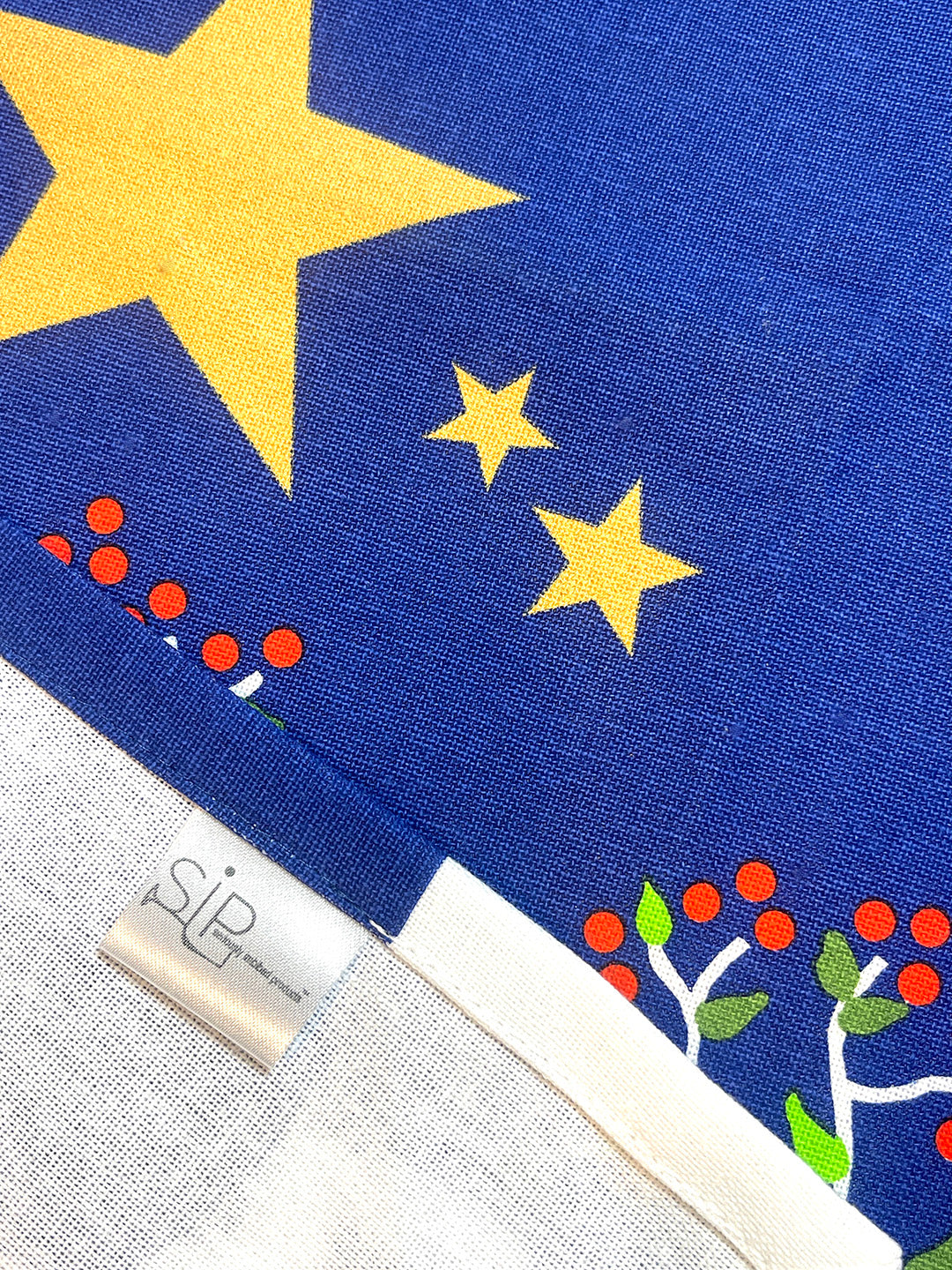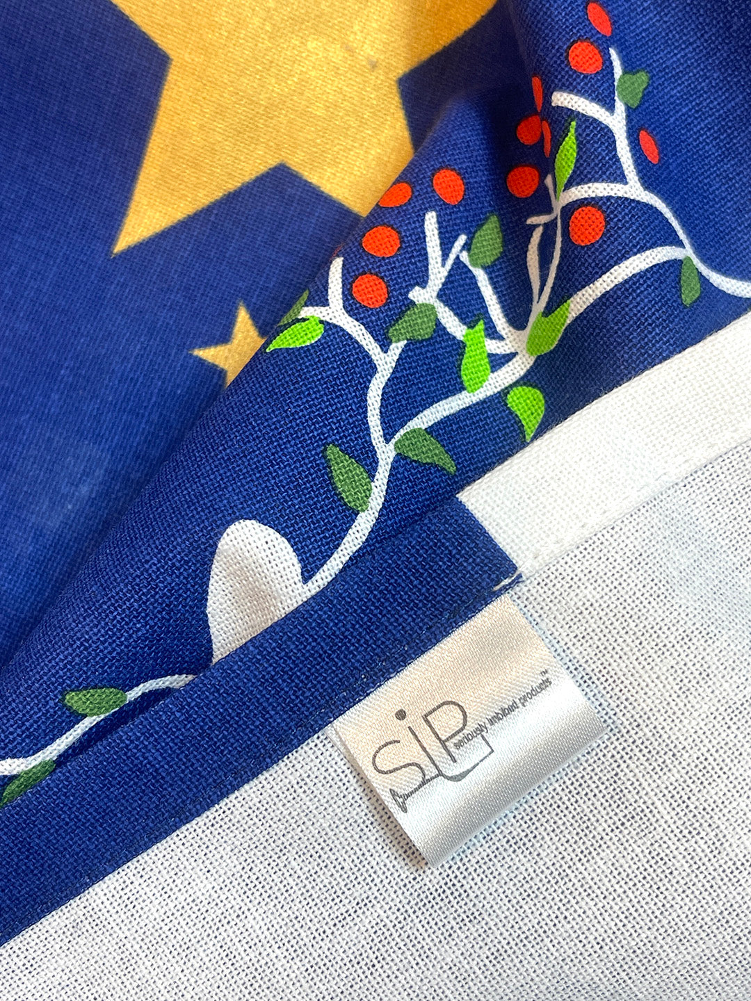 Approximately 20" x 30" Towel. GOTS certified organic cotton, mitered corners and hanging loop. Excellent quality.