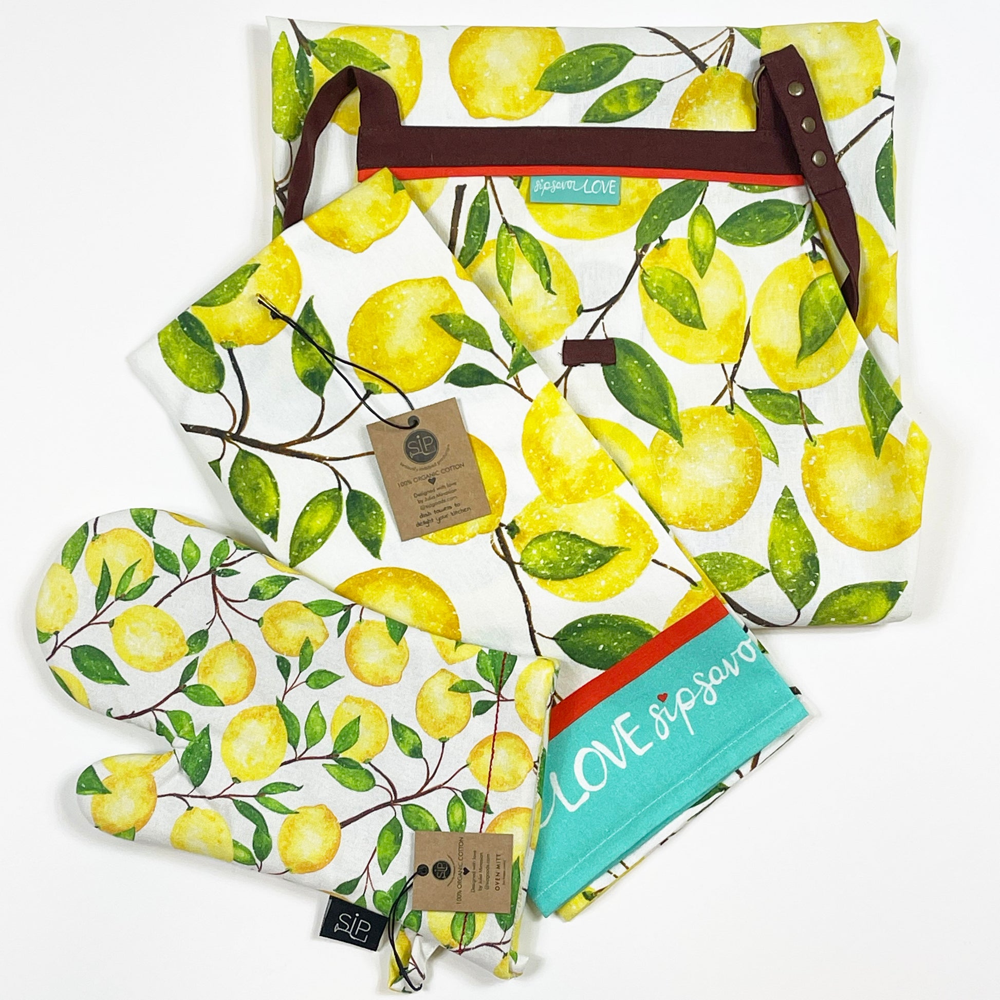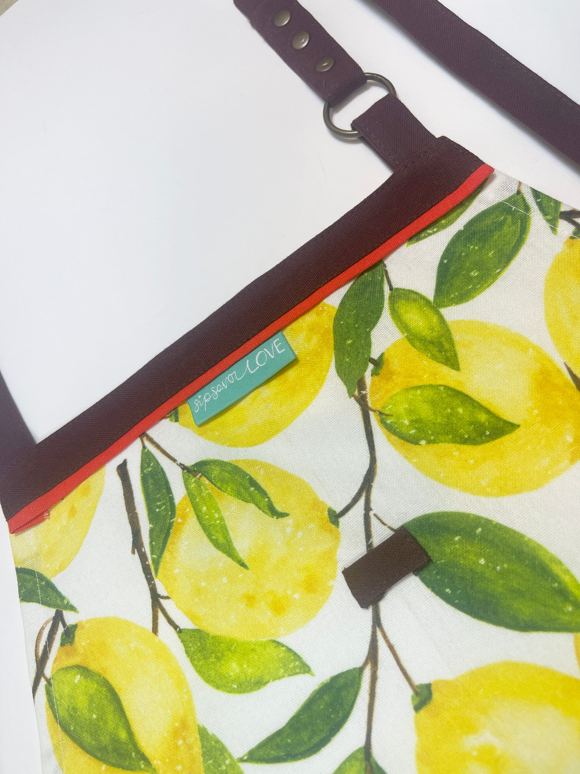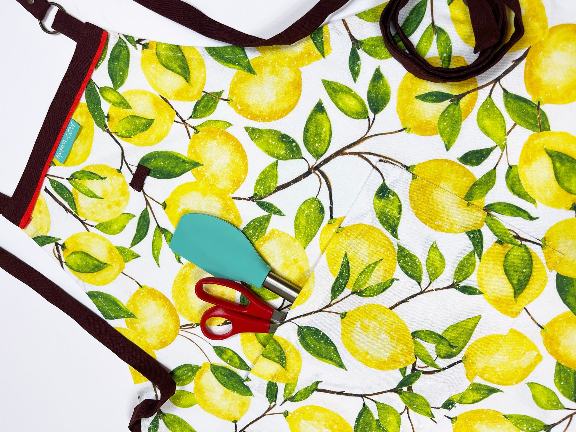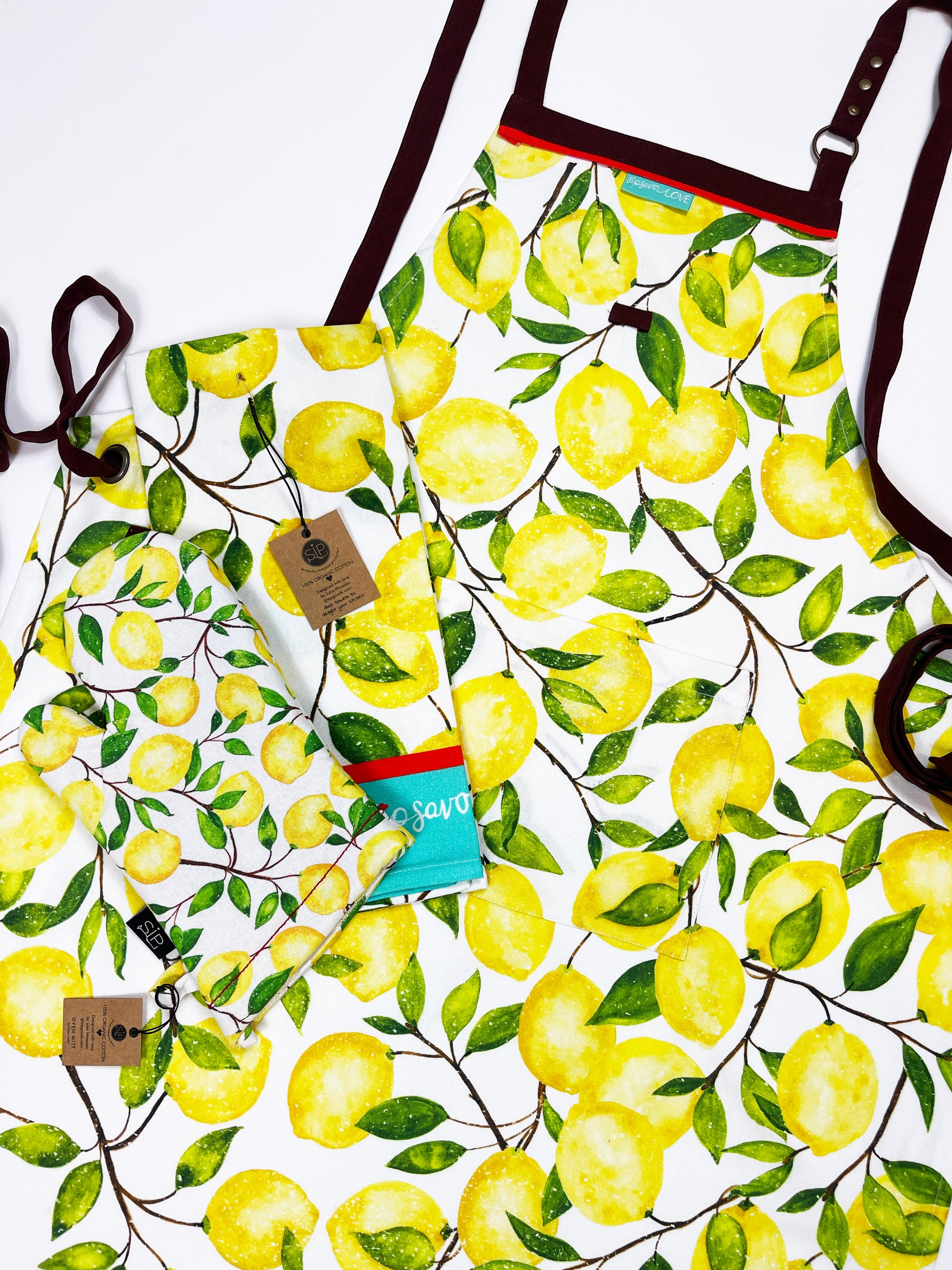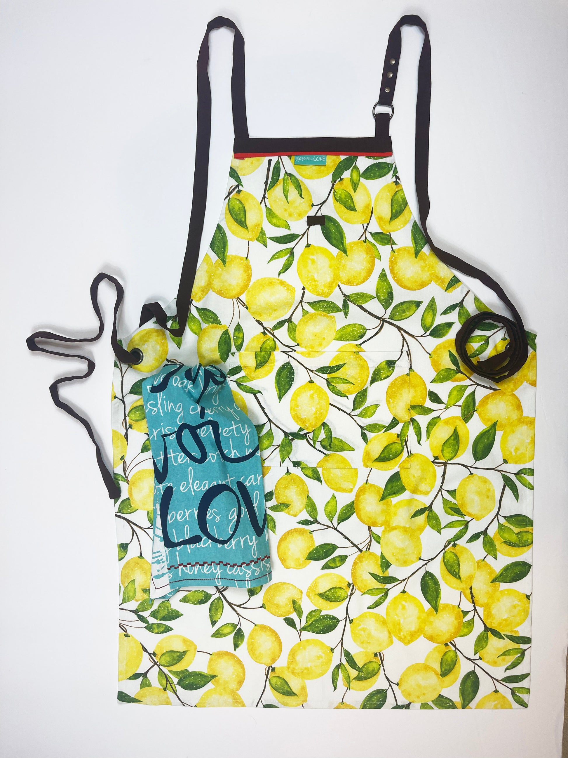 Unique classic kitchen apron with criss cross back. This is functional art for your kitchen! My original watercolor painting of lemons is scanned and printed in a high quality production process. Features include: