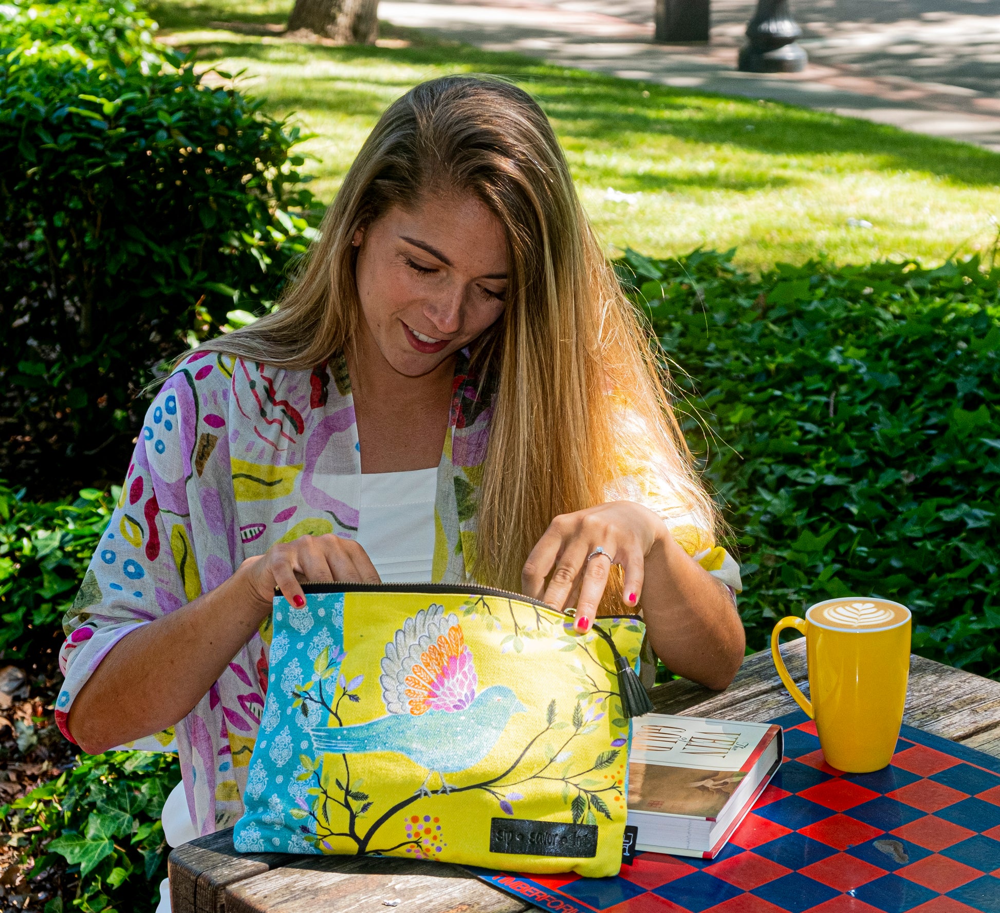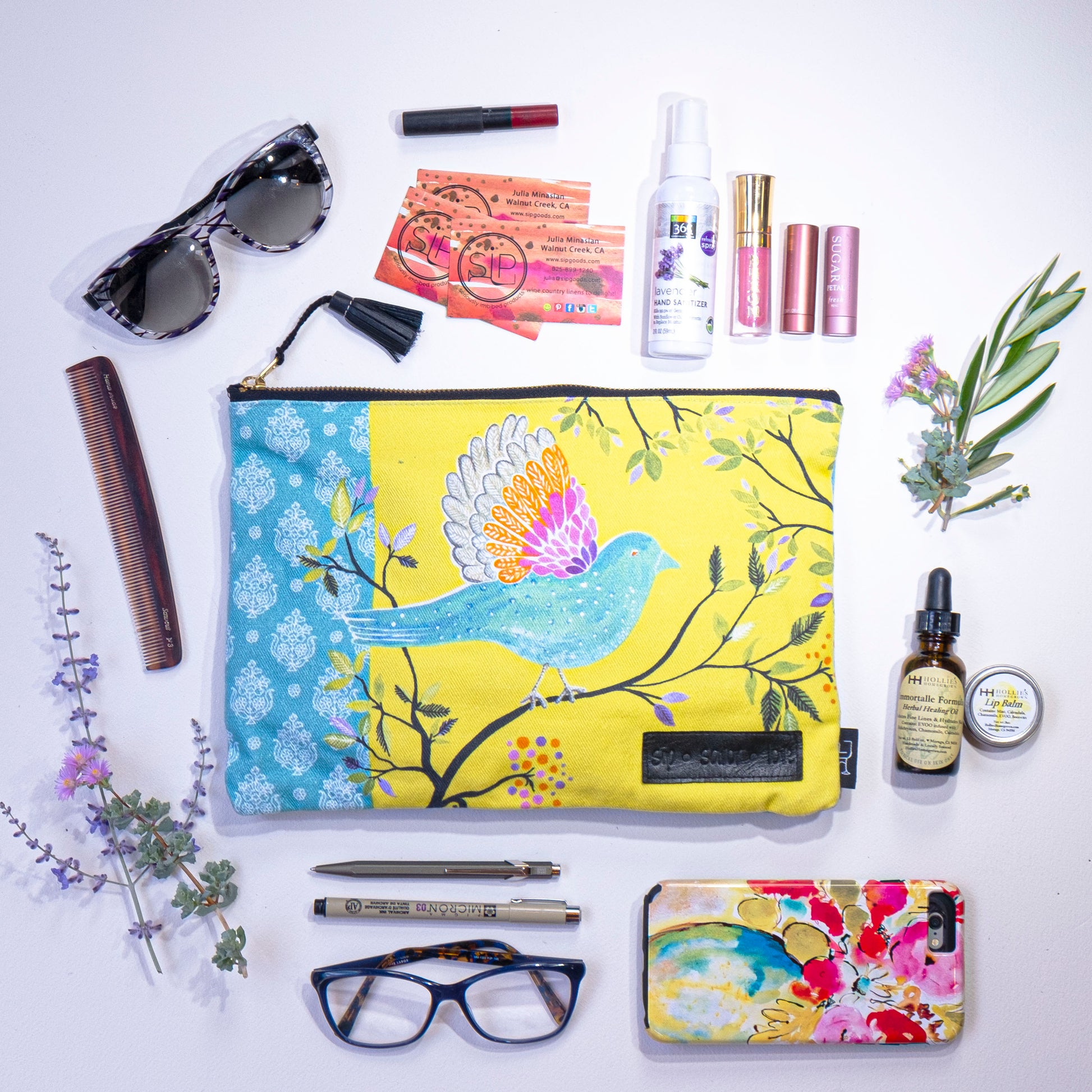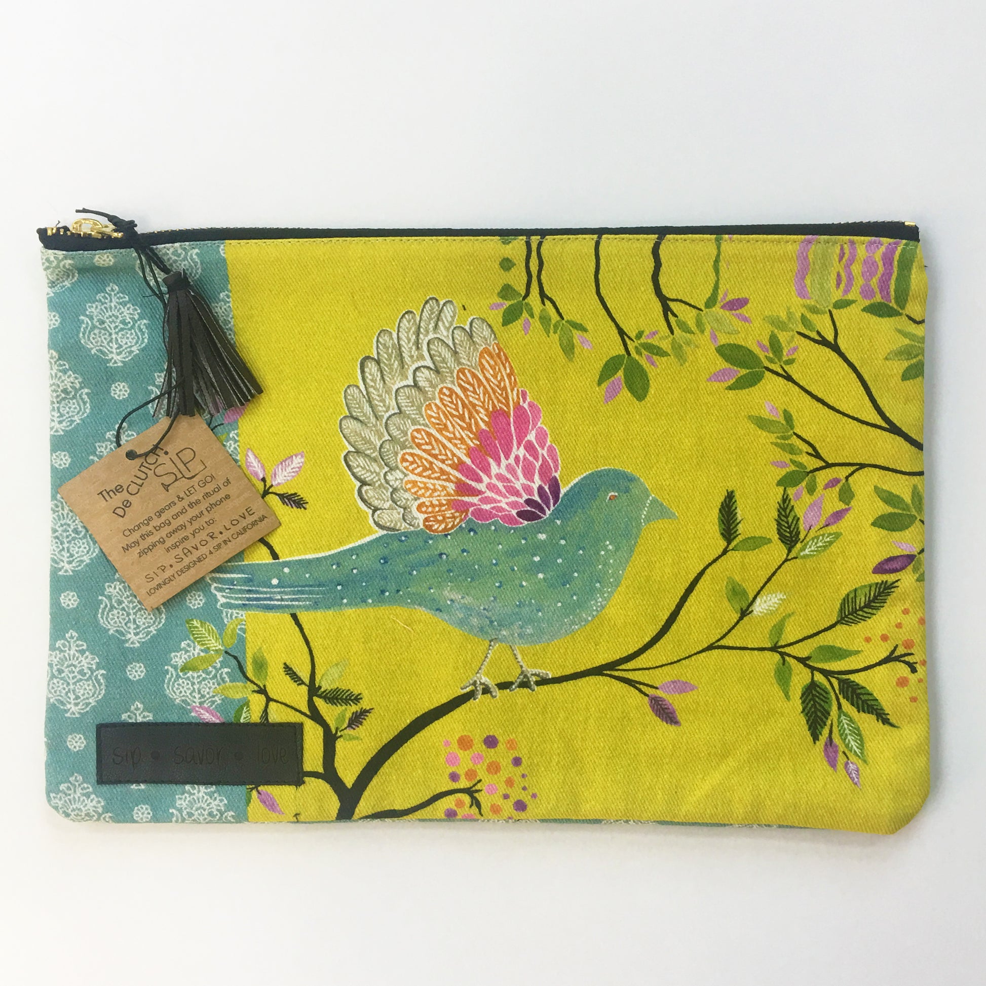 Known as the DeClutch bag, this is the place to zip away all distractions and live in the now to SIP SAVOR and LOVE! Take it for a fun time out with friends. Your fashion statement will have added style. It looks great with a simple black dress and is the perfect size to hold essentials.