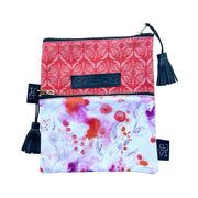 Size approx. 6.5" x 4.5”. 100% high grade organic cotton. Quality construction, woven tag high quality zipper. Reverse of bag is as shown with leather tag. Please note that the inside lining is not waterproof. It is washable.