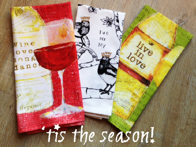 These tea towels also make great bridal shower gifts, wedding favors, housewarming or hostess gifts, Mother’s Day gifts, etc.