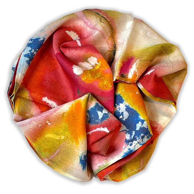 These chic, eco friendly scarves are unique fashion statements based on my own original watercolor artwork. They are luxuriously soft and drape beautifully, like natural silk, and very breatheable. From their wonderful feel, you would never guess that they are made from the pulp of beech trees, also known as “Modal” or “botanical silk.” The botanical origin means that the fabric is much more eco-friendly than material derived from silk worms.