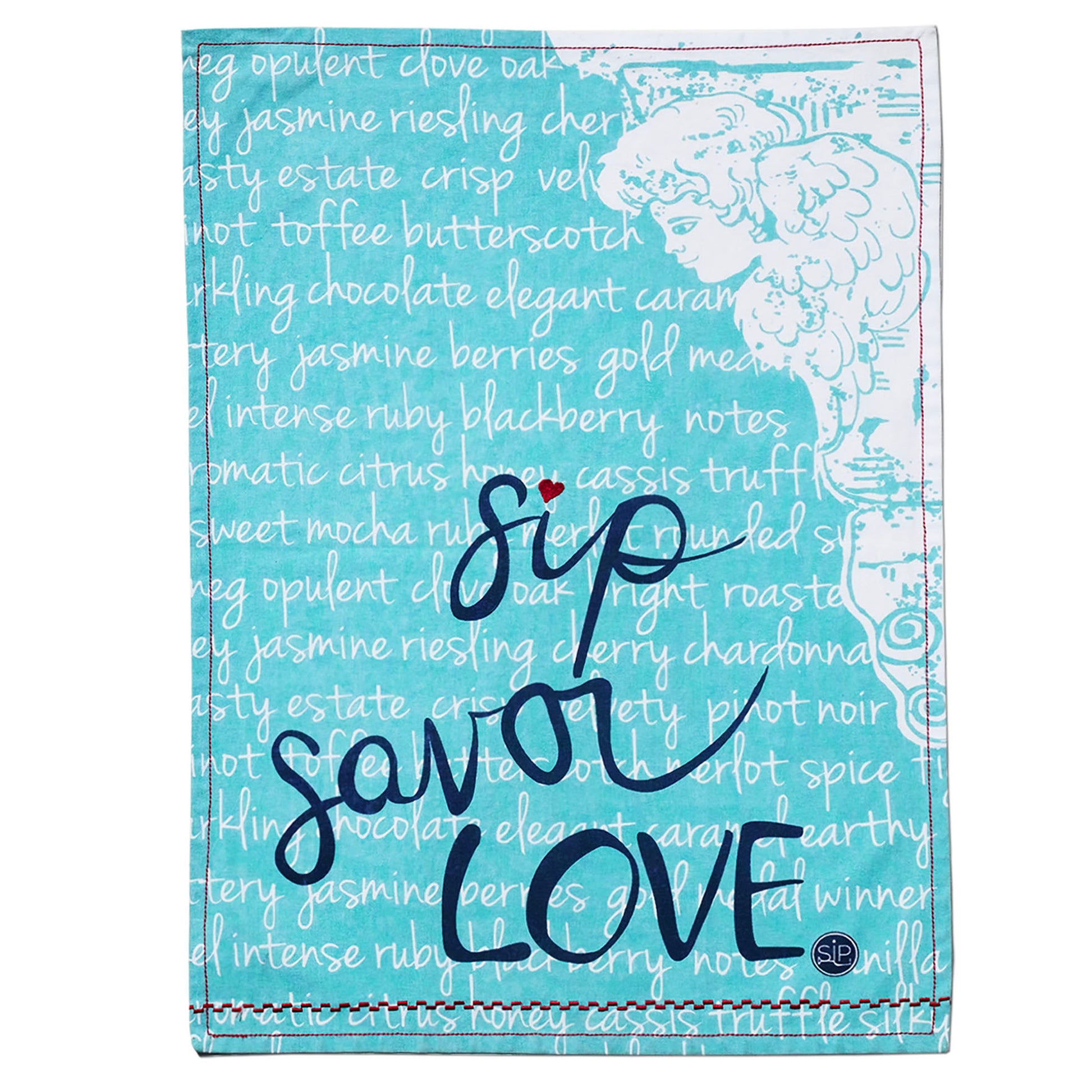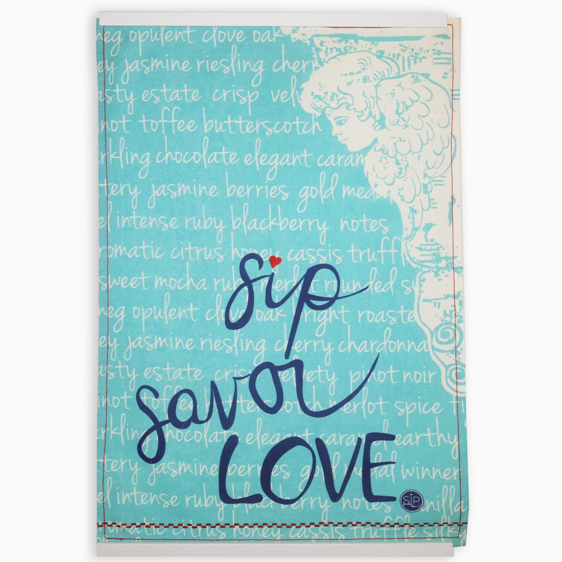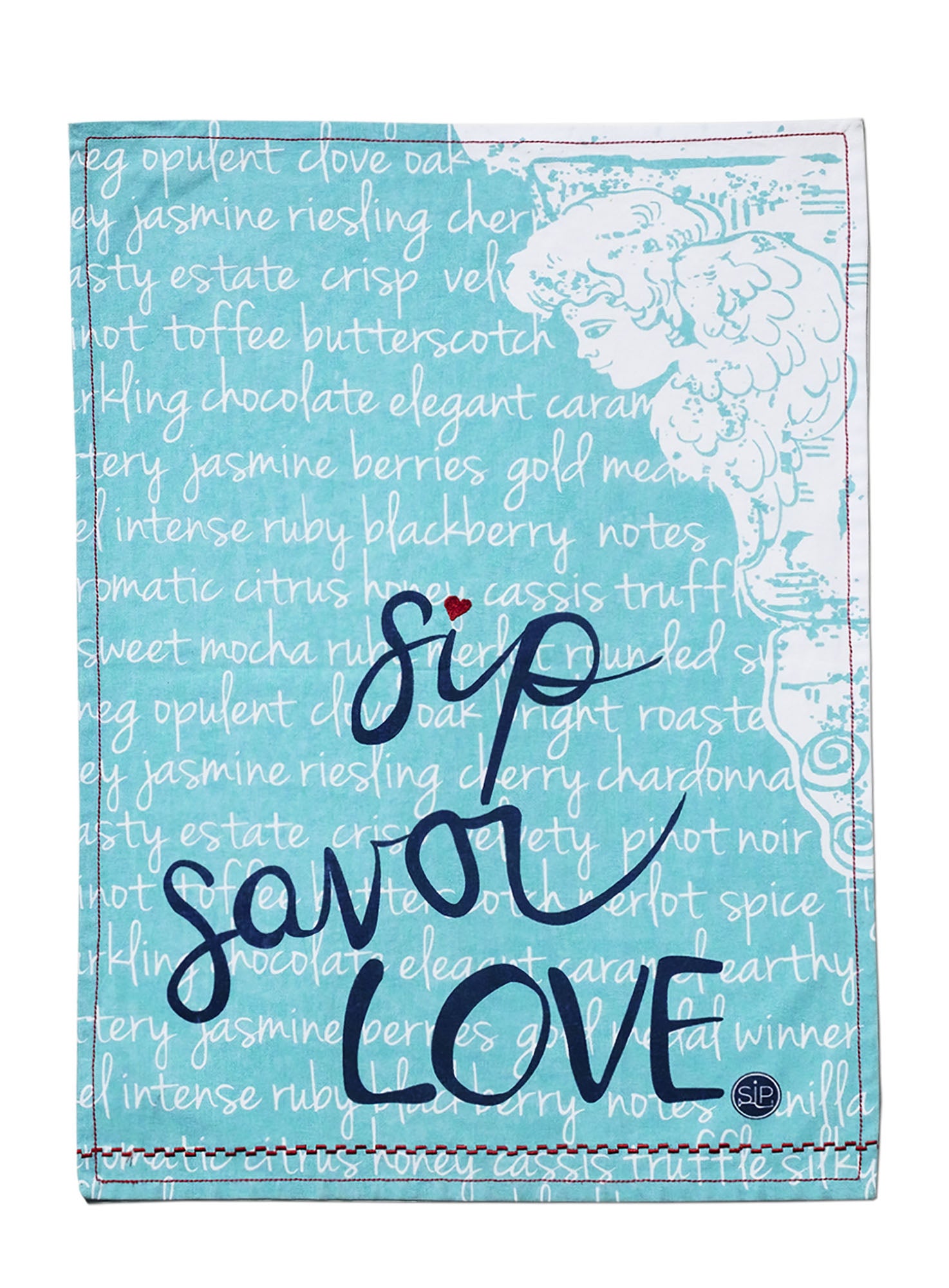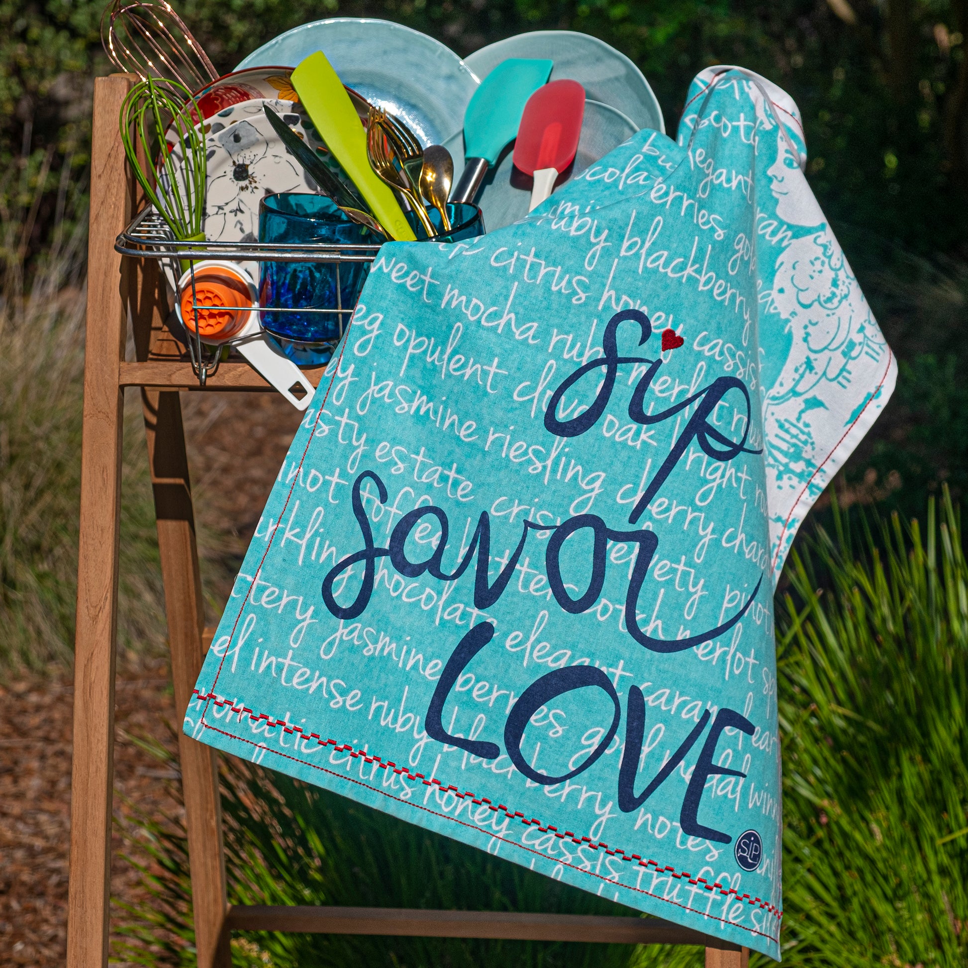 My company motto is featured on this towel: Sip Savor Love. Each day can feel richer when we make this positive focus part of our daily intention. May your days feel inspired!