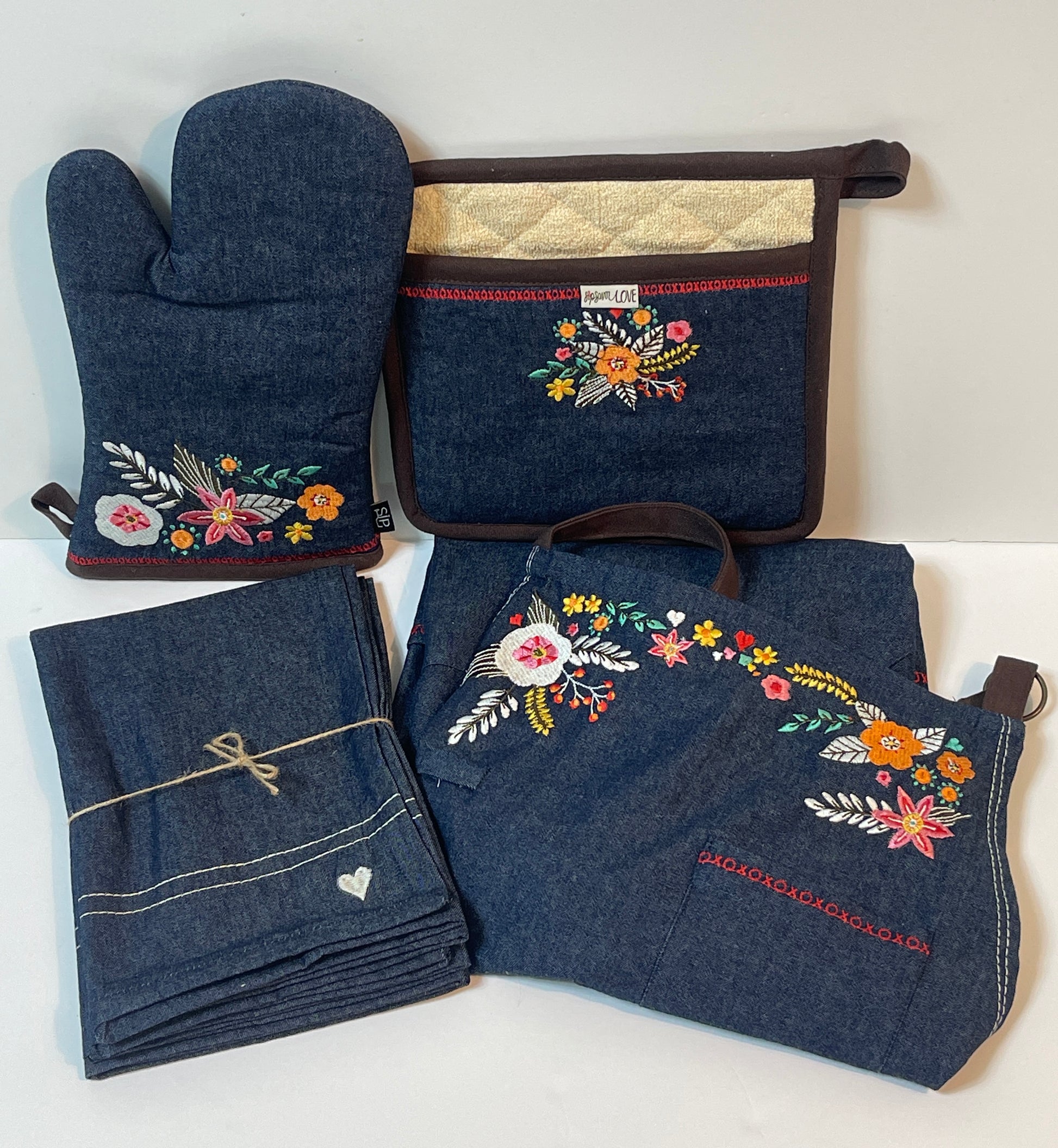 Pair it with our oven mit, pot holder, tote bag and a simpler design denim apron. You could have a his and hers!