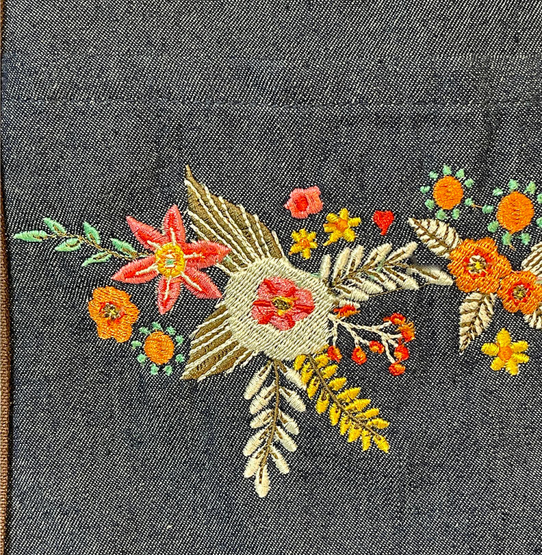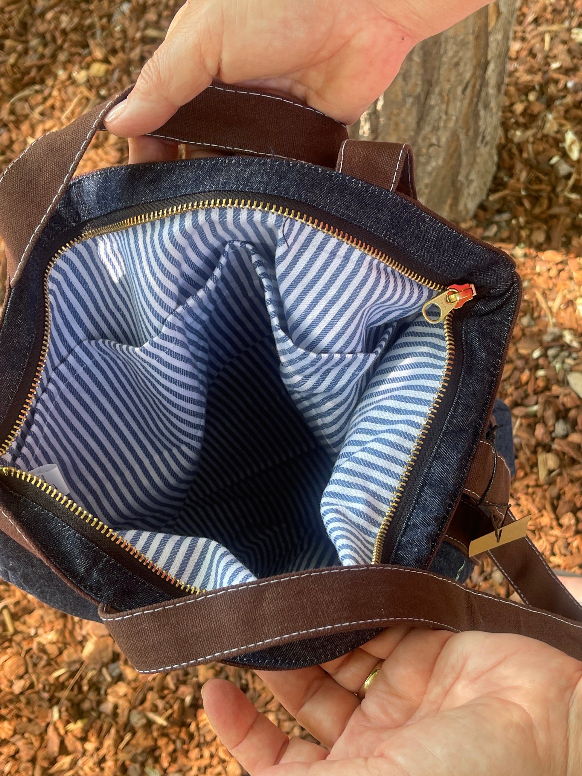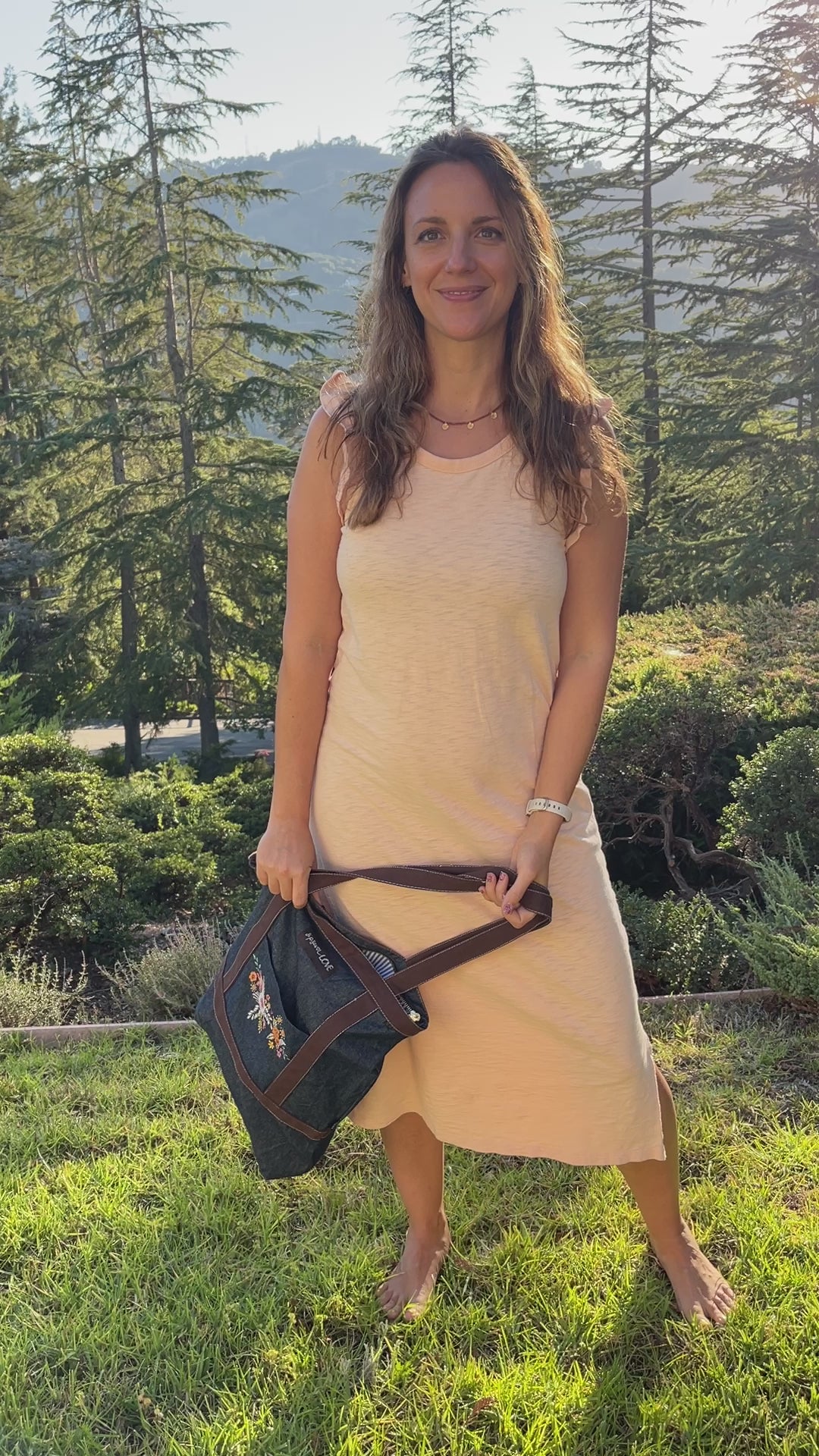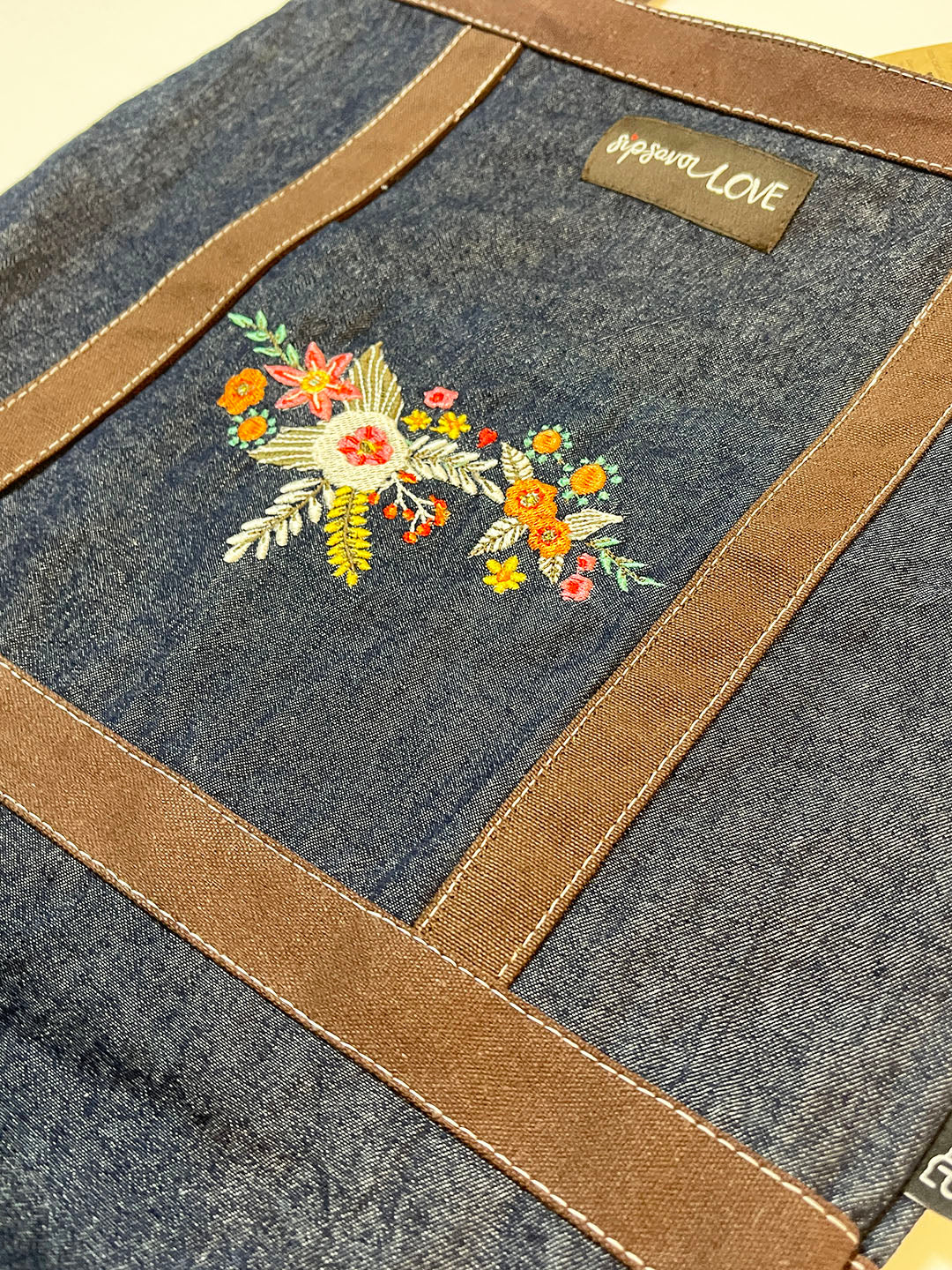 Unique Tote Bag! This has both inside and outside pockets, a quality zipper and a wonderful woven stripe lining. The embroidery was so much fun to design. I wanted it to feel spontaneous and colorful but not overwhelm the denim and I think it was produced perfectly.