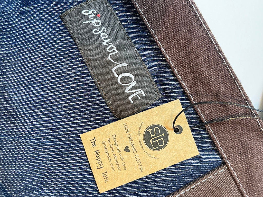 My company motto can be seen here as a stylish fabric tag - it is: Sip Savor Love. Each day can feel richer when we make this positive focus part of our daily intention. May your days feel inspired!