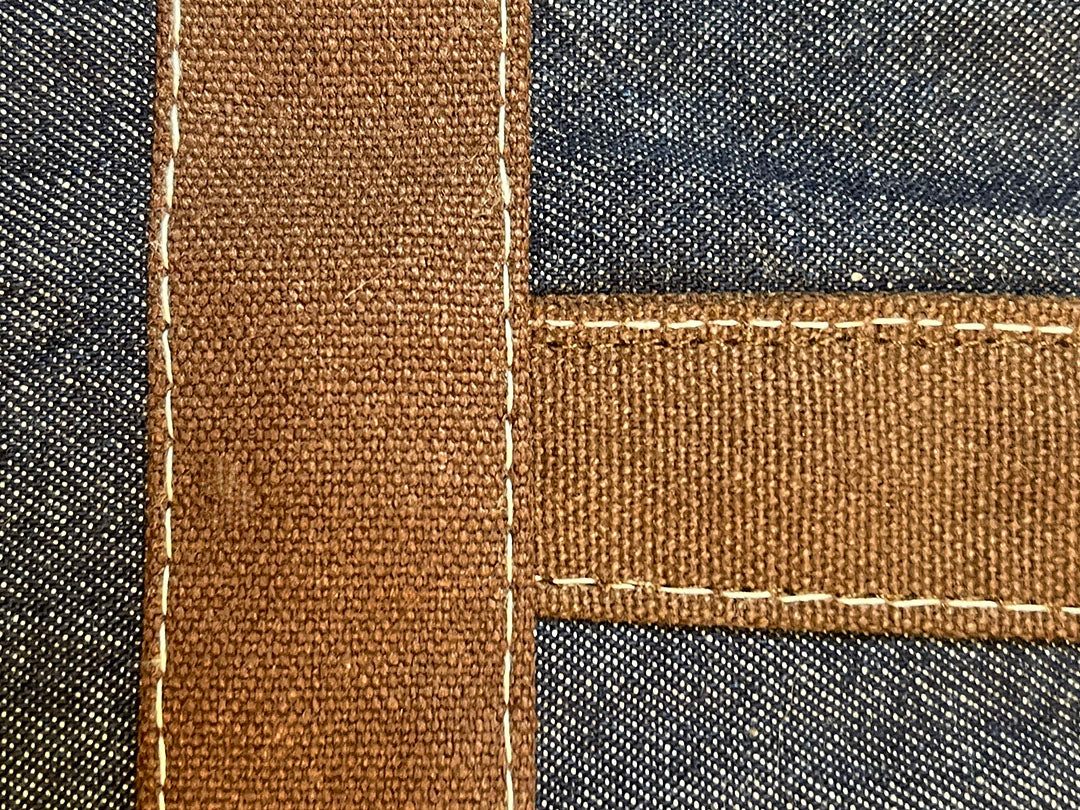 Size 15” x 18" with a 3" gusset. 100% high grade organic cotton denim. Quality construction, cotton handles stitched to look like leather. Full lining. 100% washable.