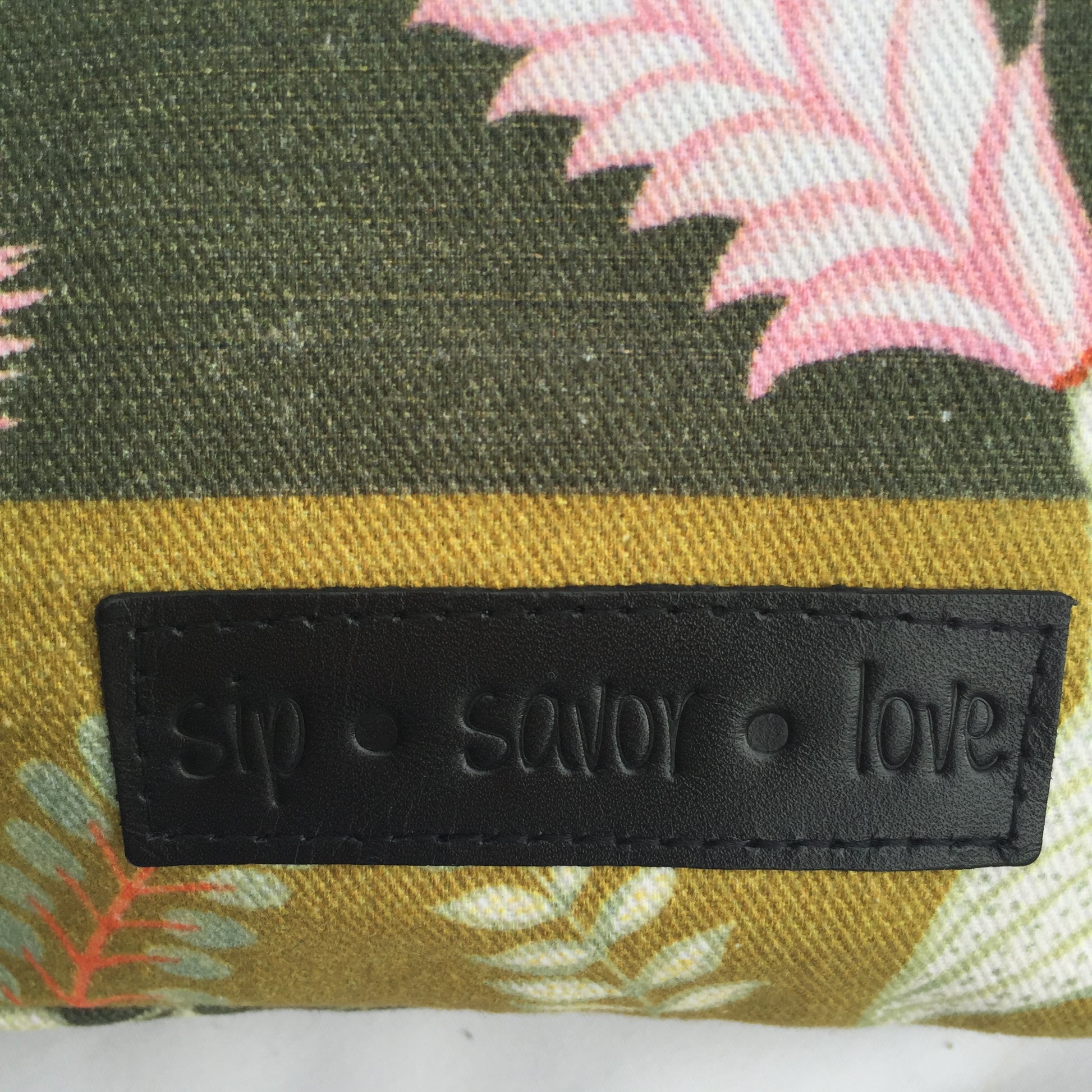 Known as the DeClutch bag, this is the place to zip away all distractions and live in the now to SIP SAVOR and LOVE! Take it for a fun time out with friends. Your fashion statement will have added style. It looks great with a simple black dress and is the perfect size to hold essentials.