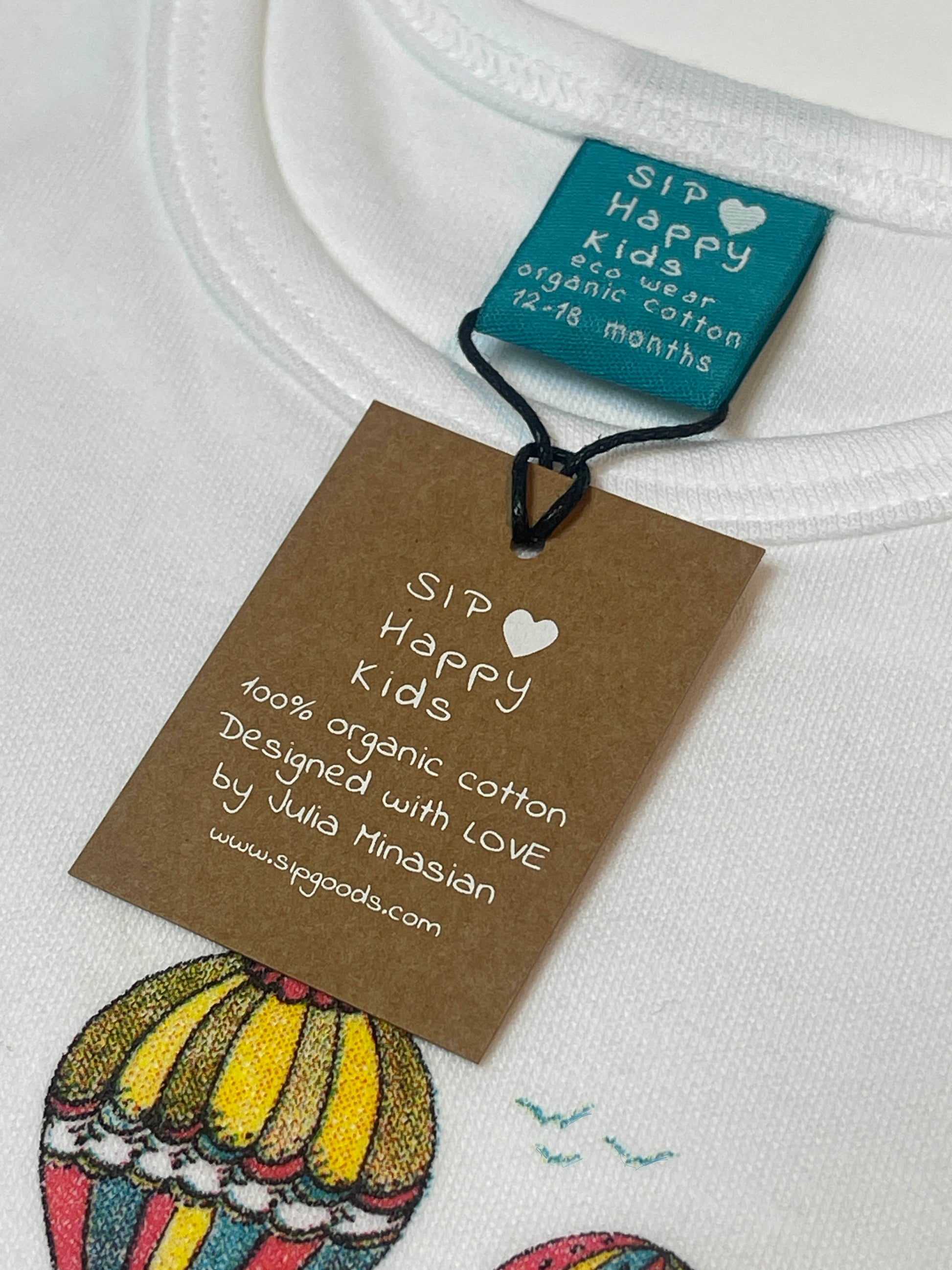These adorable little onesies are part of the SIP Happy Kids Collection. They come in three sizes:
