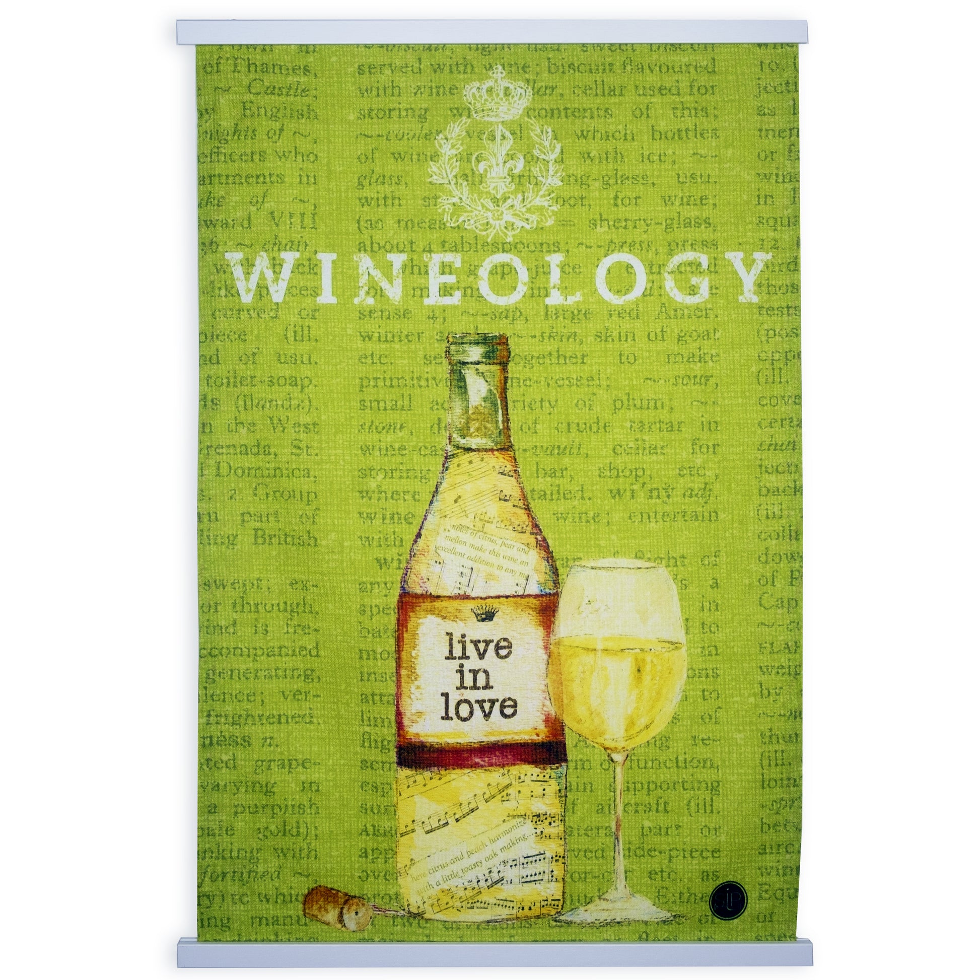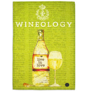 The wine bottle and glass are a combination of water color and ink. The back is digitally added. Wineology is a reference to the study of Wine! Normally this study is strangely called OENOLOGY. That didn't sound right to me even though one can supposedly get a degree in it!!!
