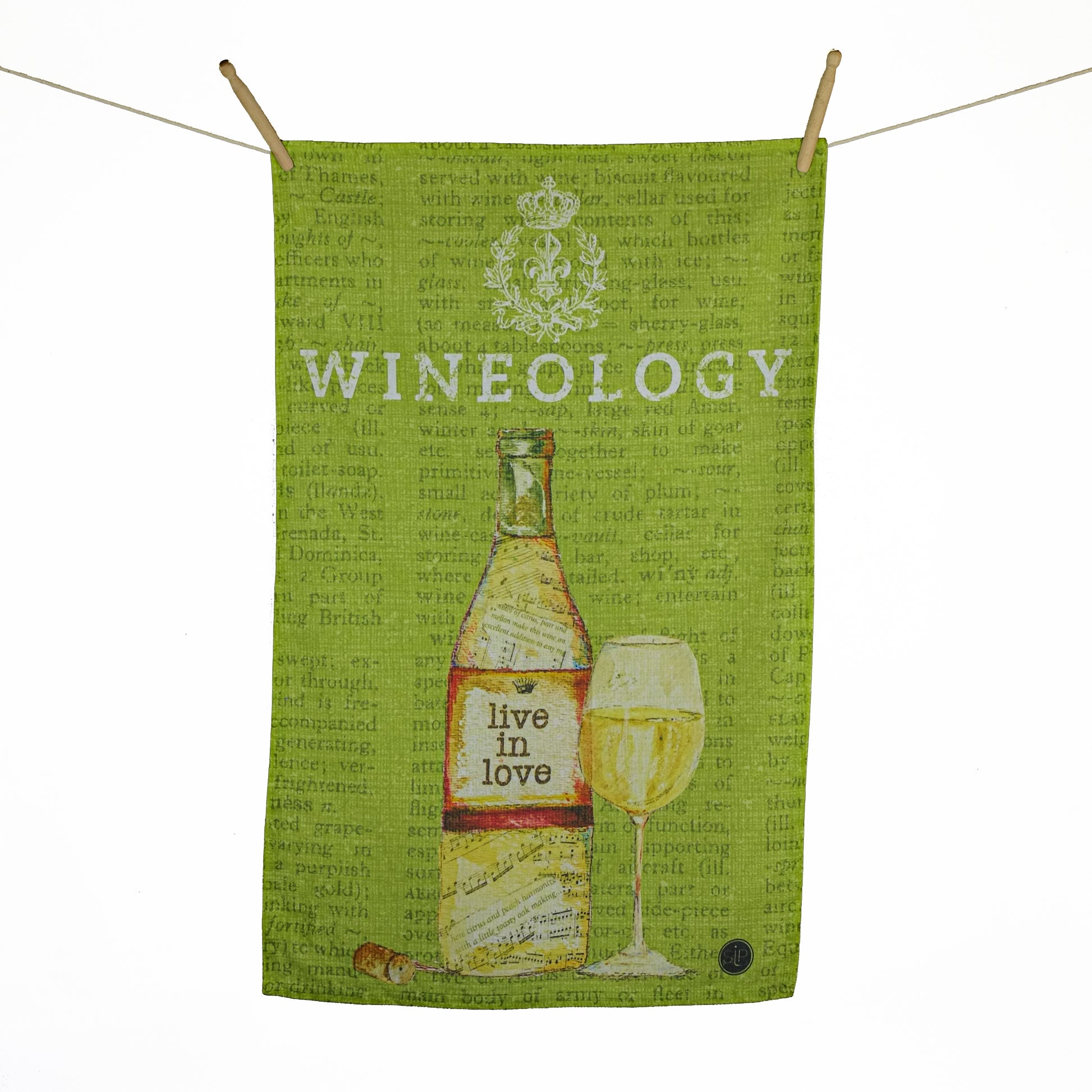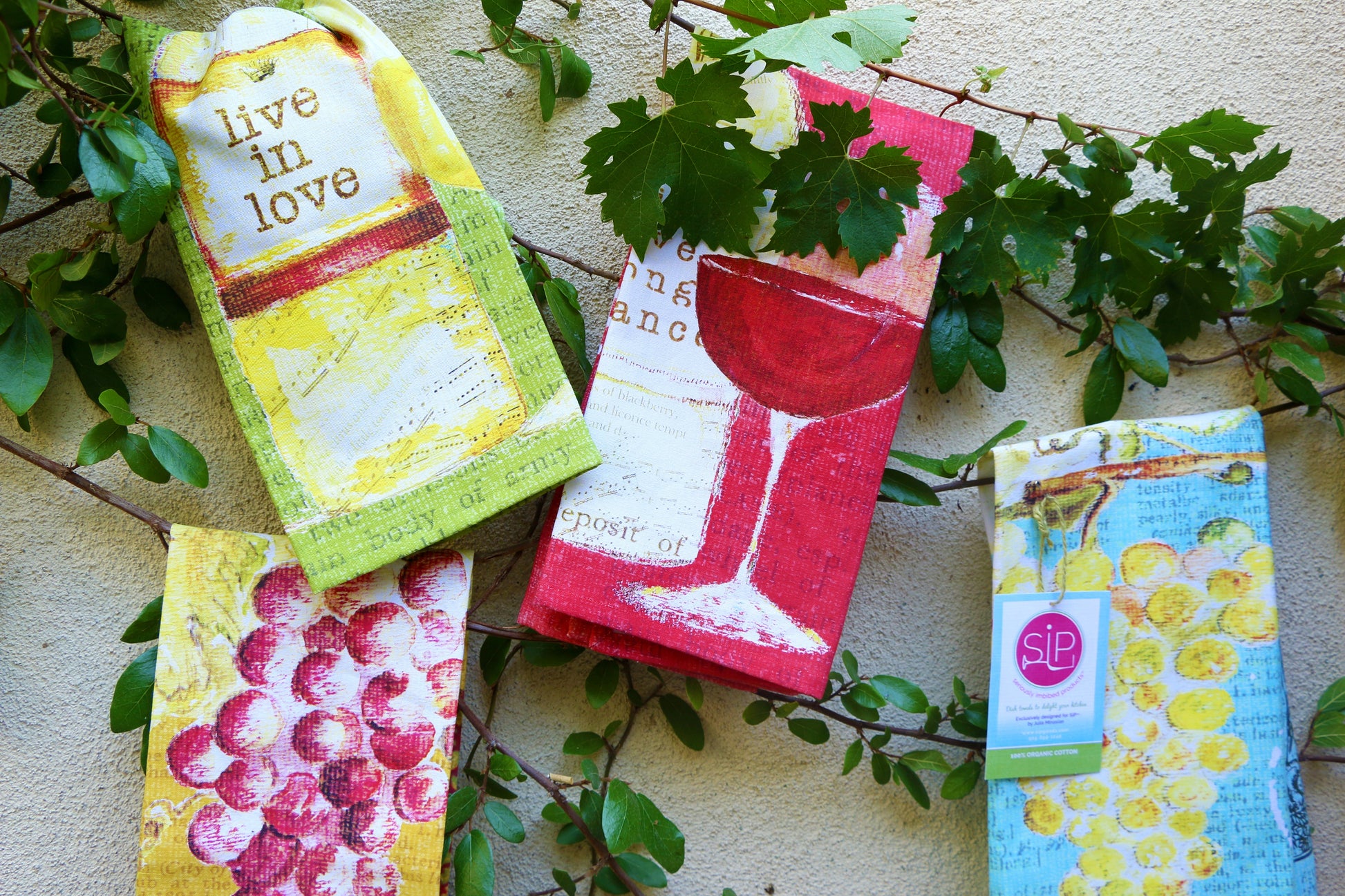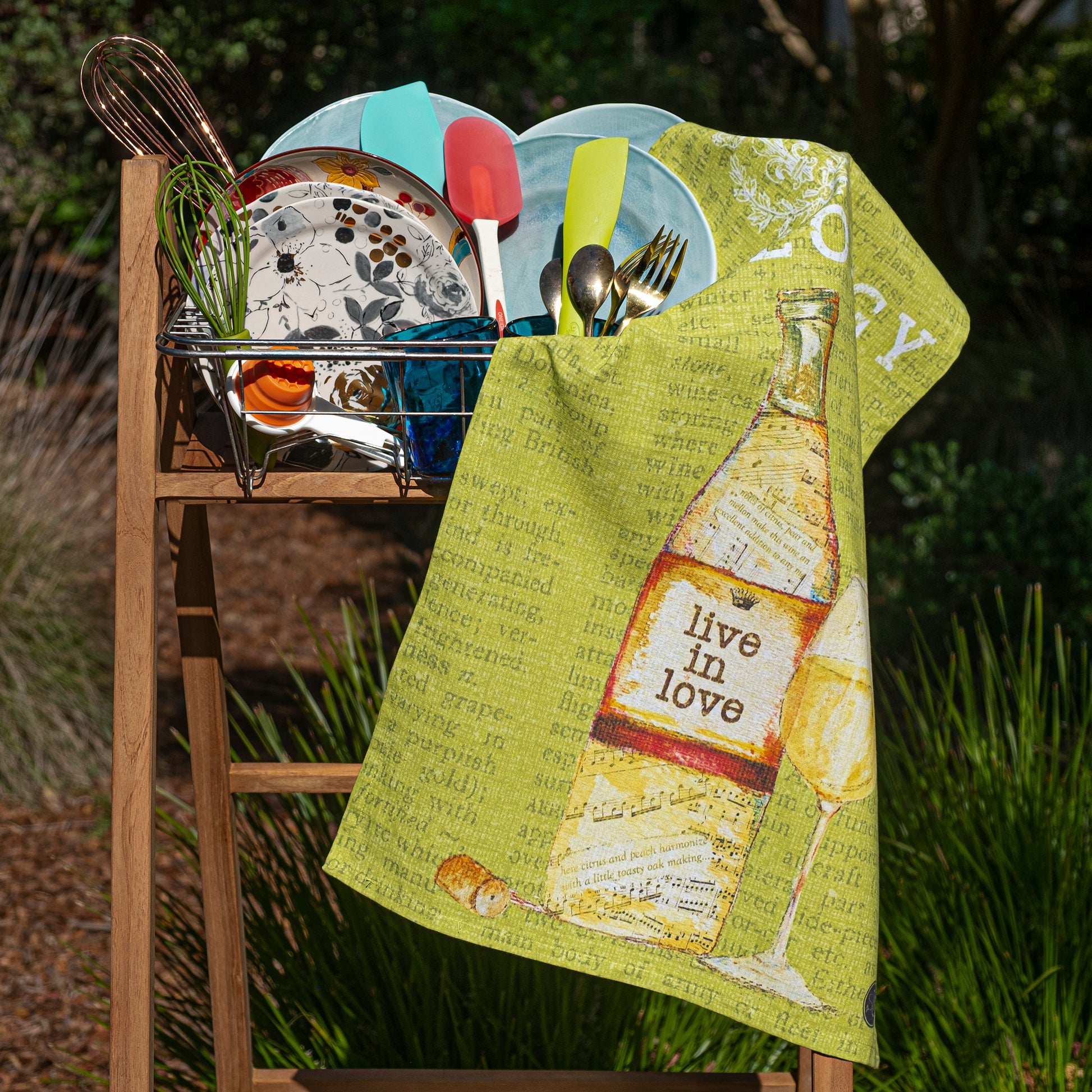 Super size 20” x 30”. 100% high grade organic cotton. Beautifully mitered corners and thoughtful hanging loop. Natural and long lasting dyes so the colors do not fade after many washings. Color safe. Colors: Vineyard Green, Chardonnay Yellow.