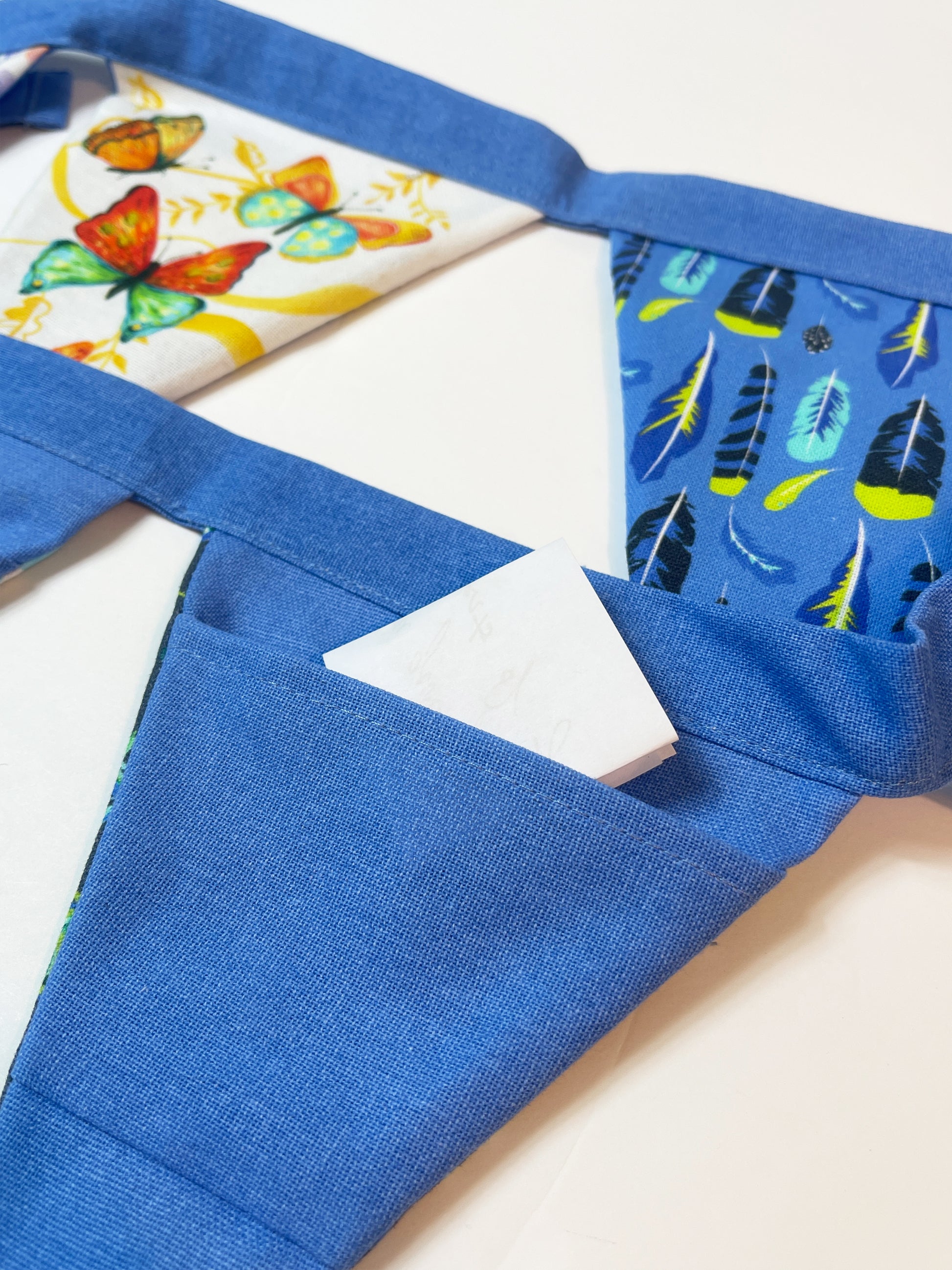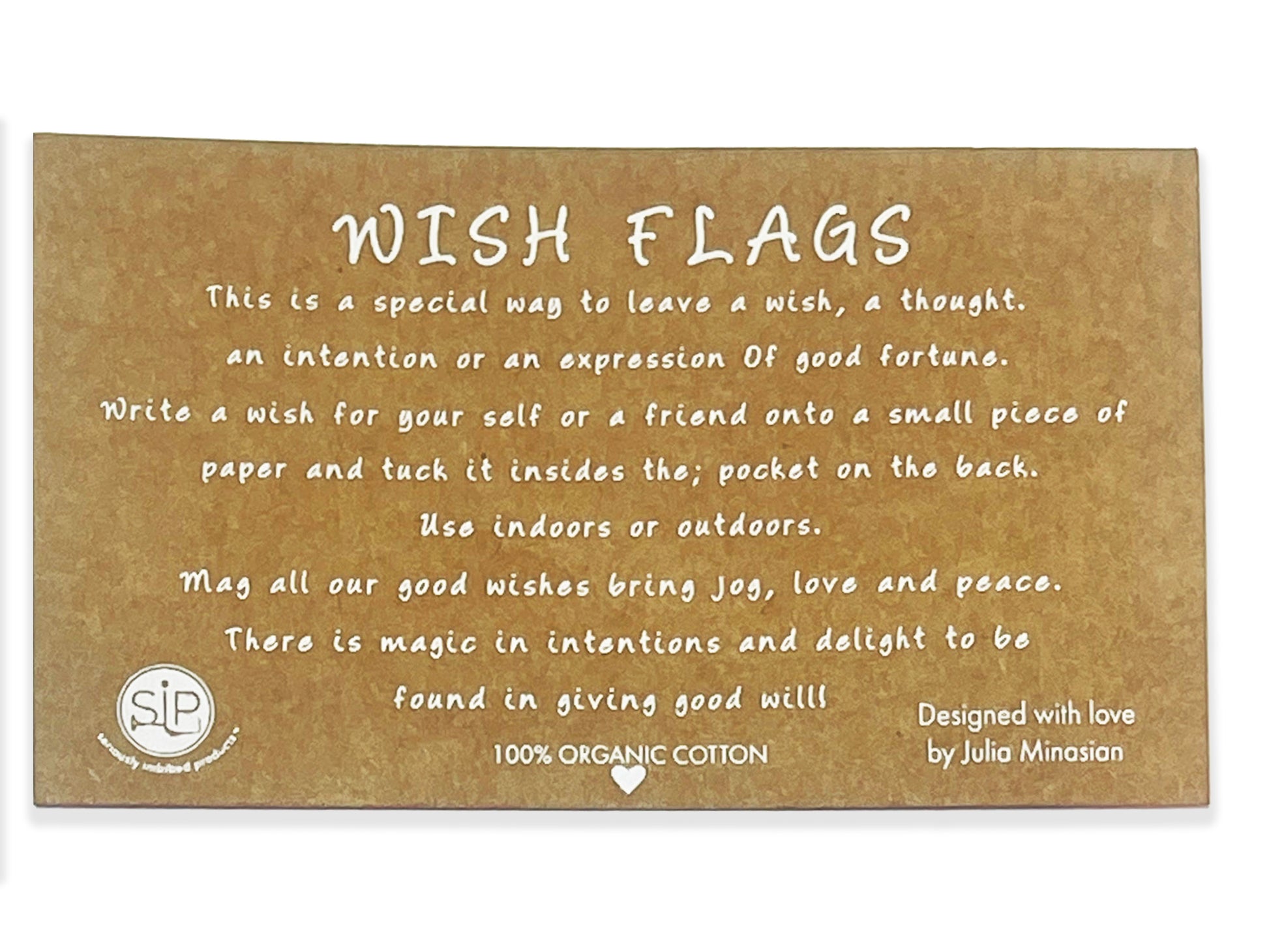 These flags are a great gift to celebrate a milestone or bring joy every day by leaving a loving wish. There are 11 little flags and each has a pocket on the reverse. You can write down your wish or positive thought (for yourself or a friend) and pop it inside then hang them inside or outside.