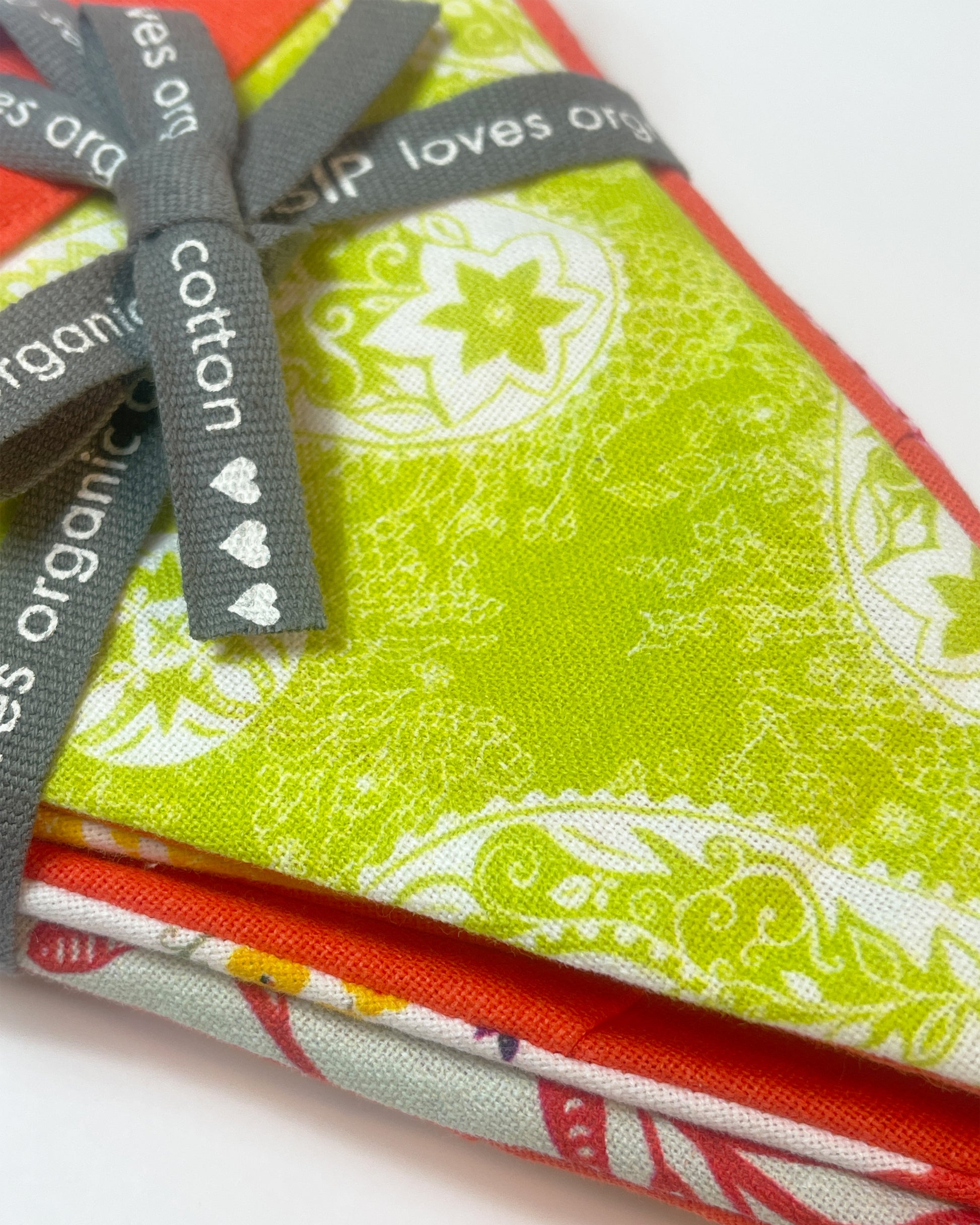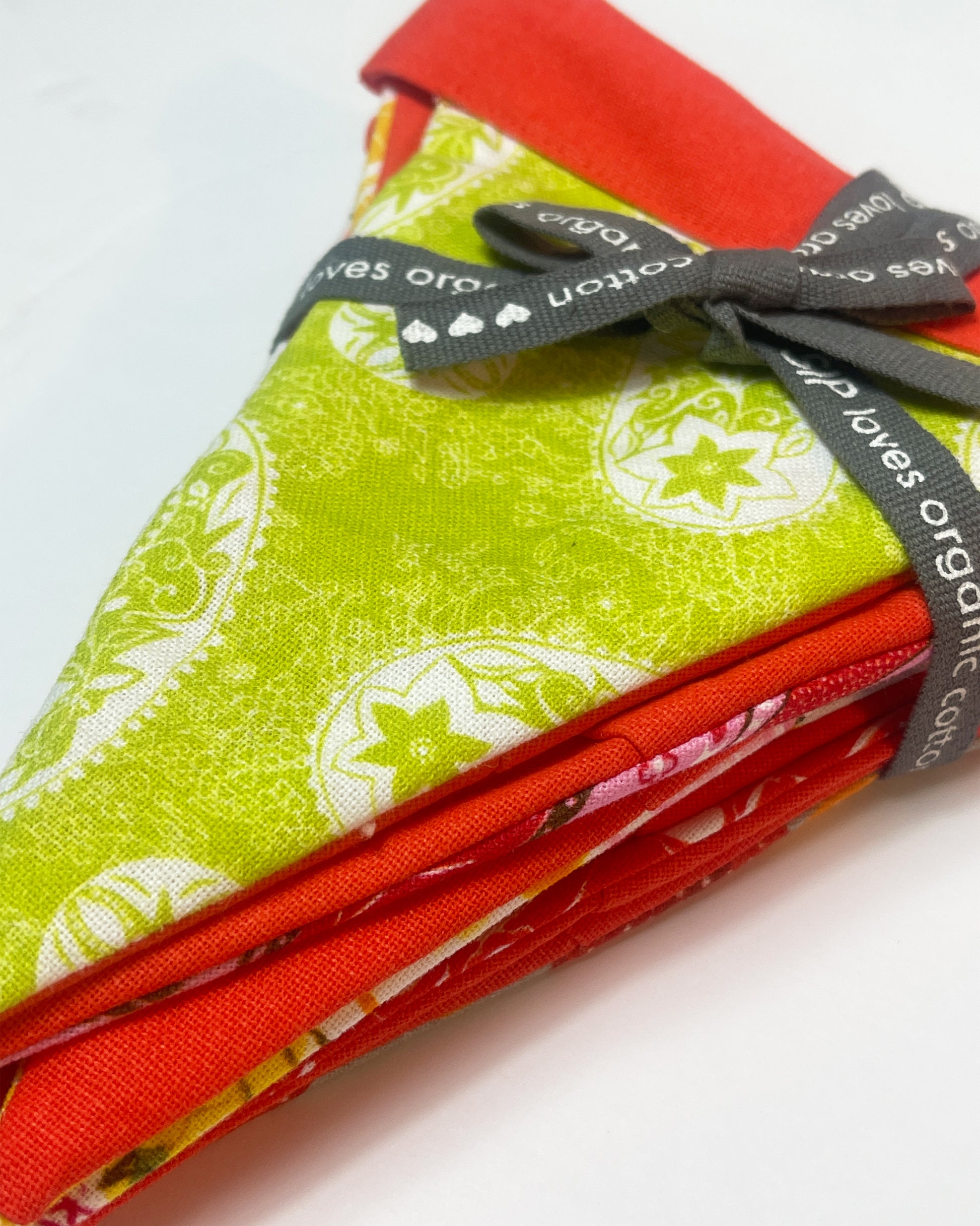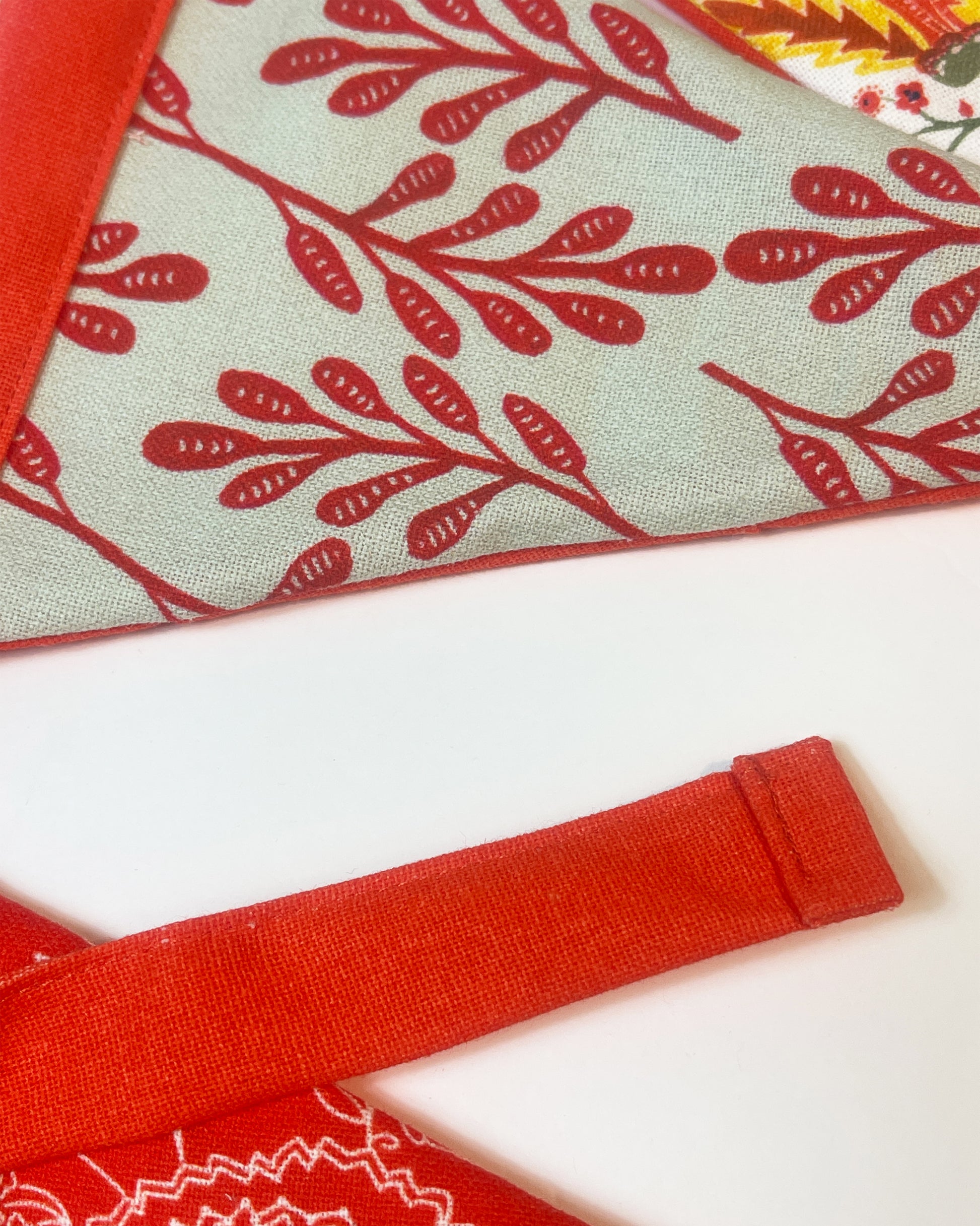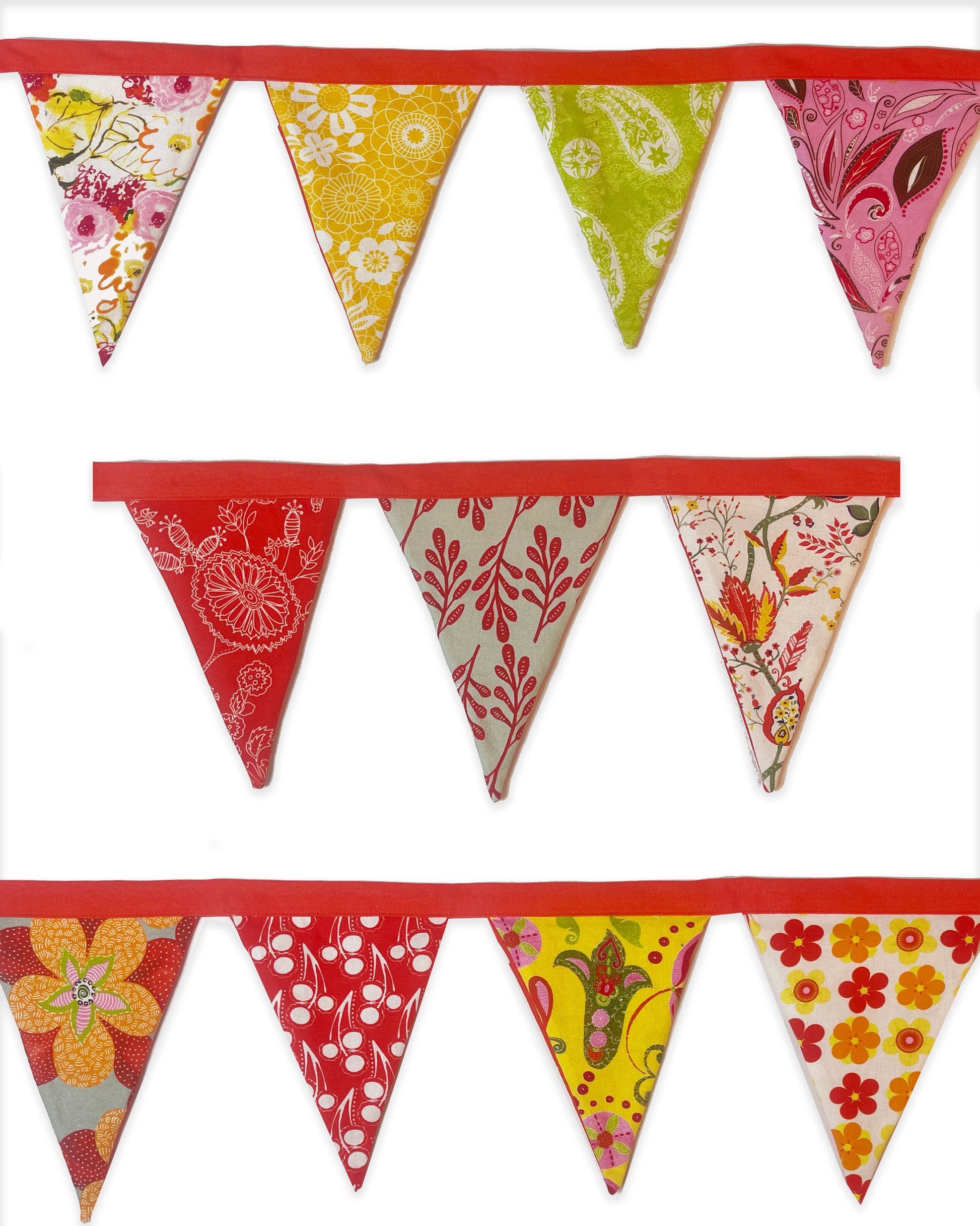 These are beautiful made with organic cotton. The triangles are 8" tall and 6" at the top.